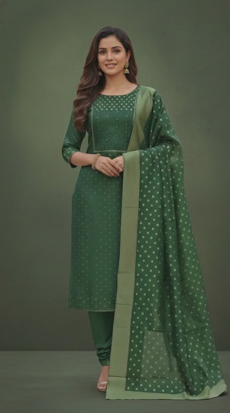 Product Details Top : Chanderi | 2.5 Meter Bottom : Santoon | 2 Meter Dupatta...