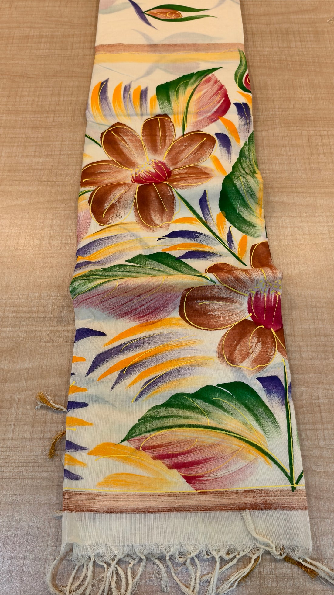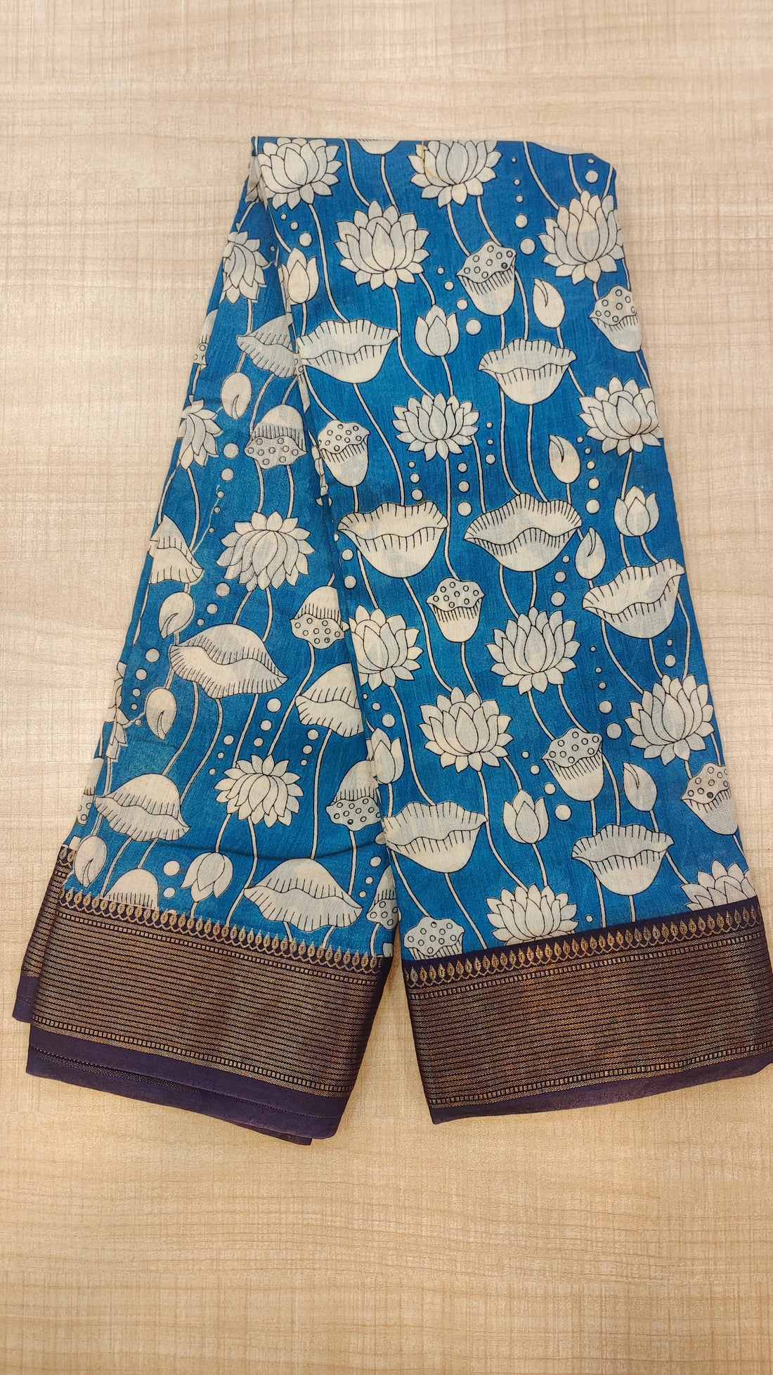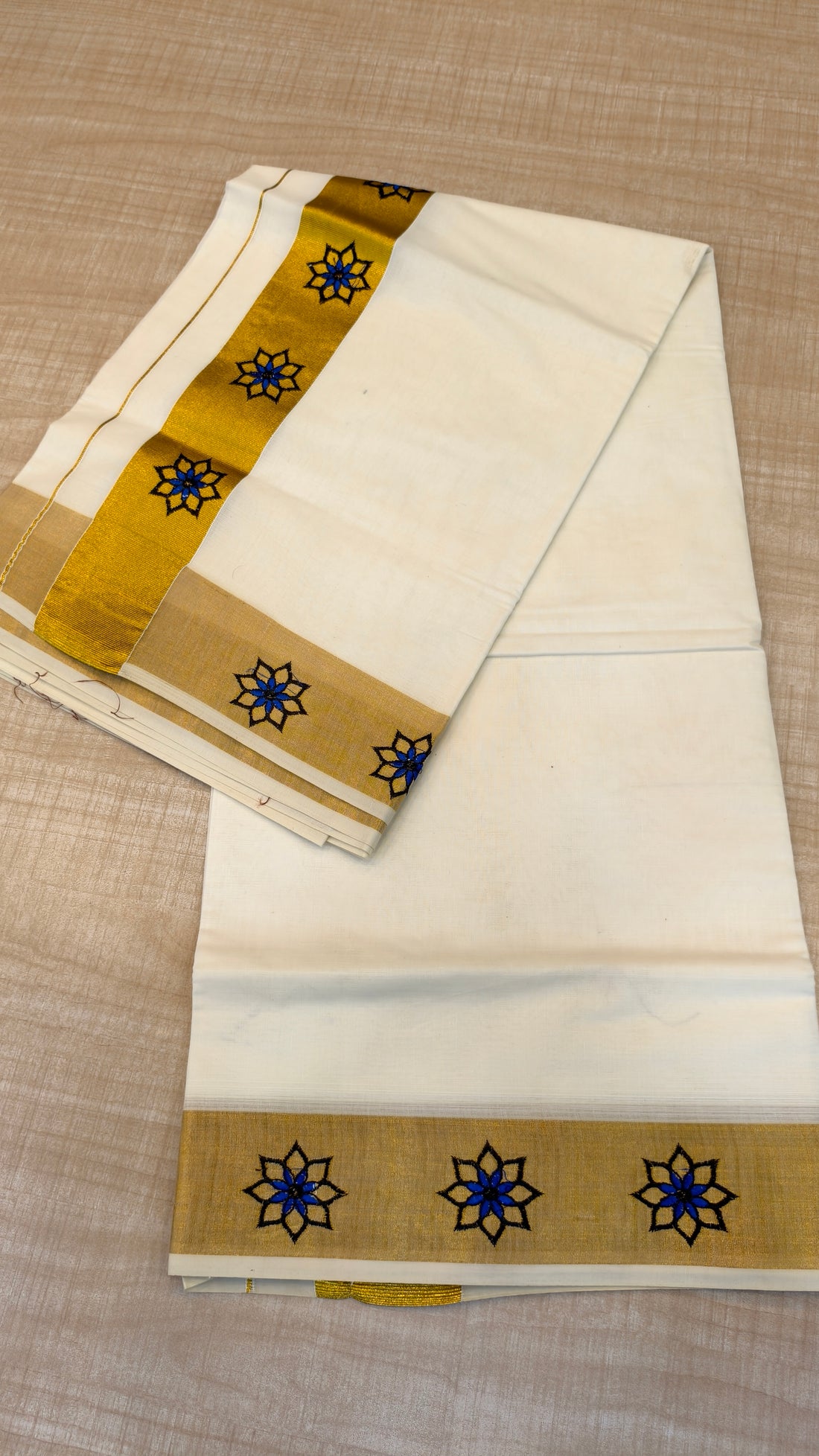 Cotton kerala saree with lotus floral print. Same running blouse attached with saree Miya paired...