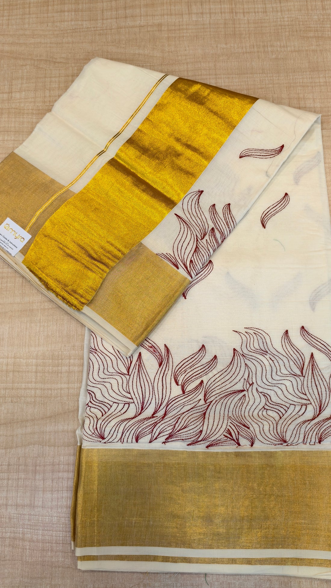 Onam Collection - Traditional Kerala Saree with jacquard weavingΒ Celebrate the spirit of onam with...