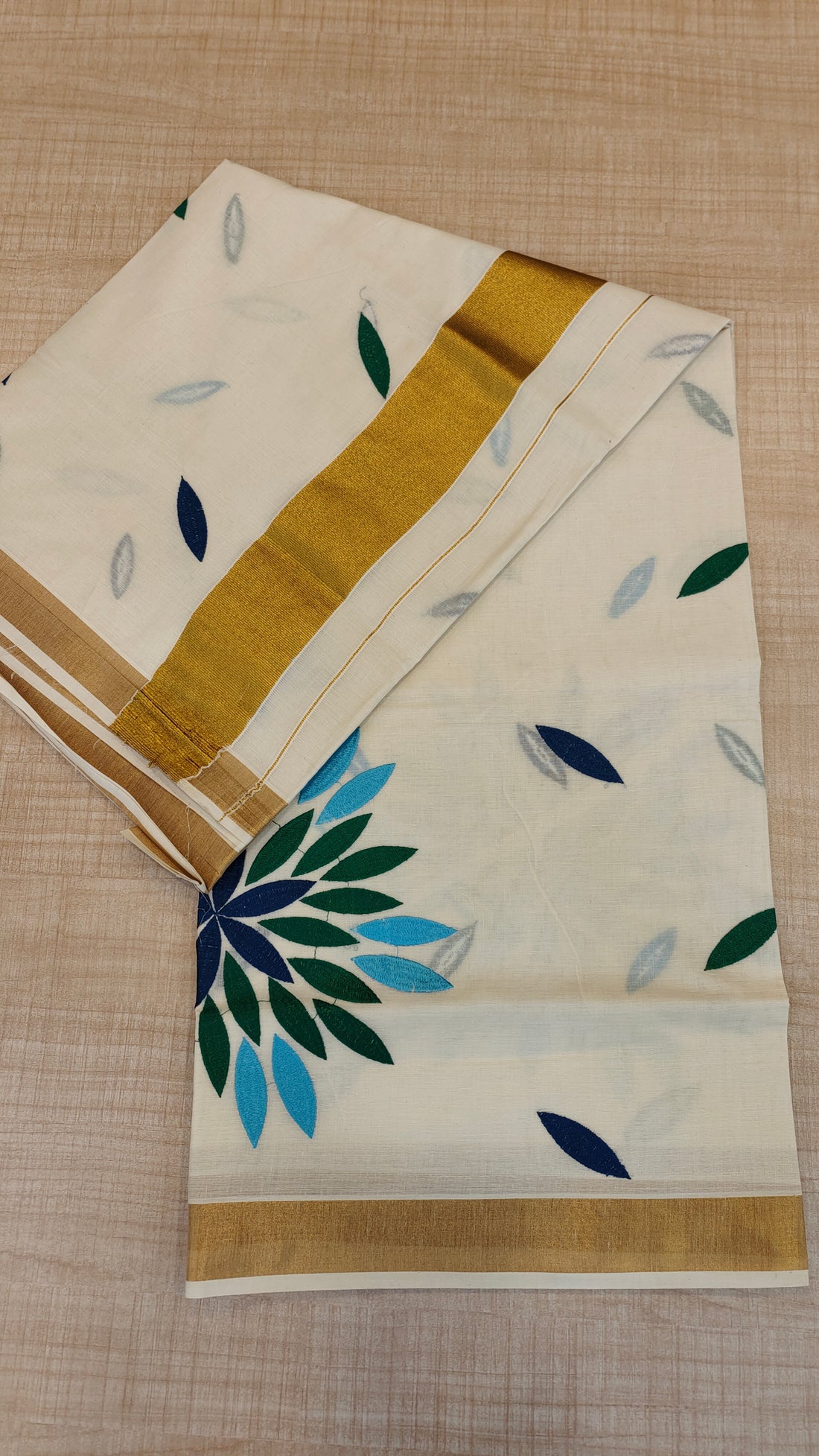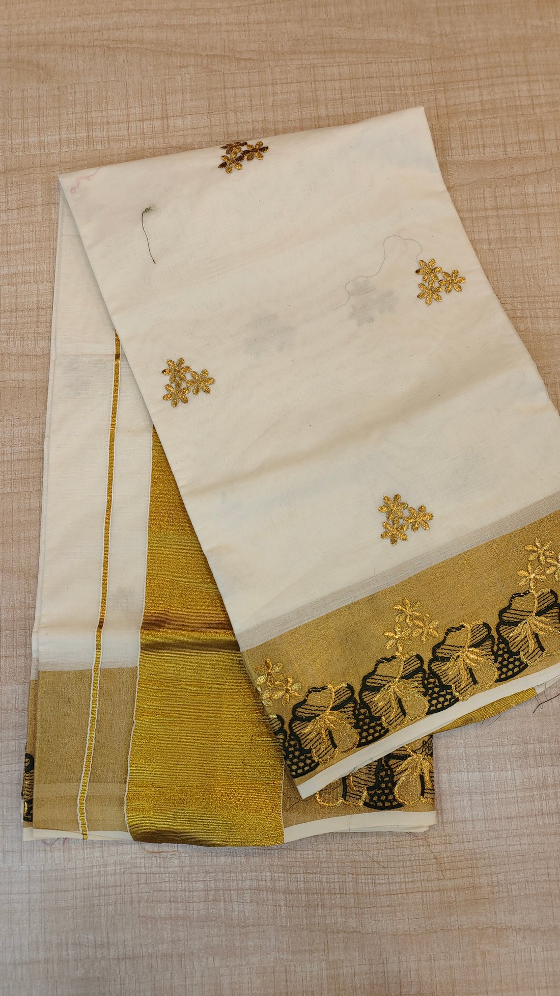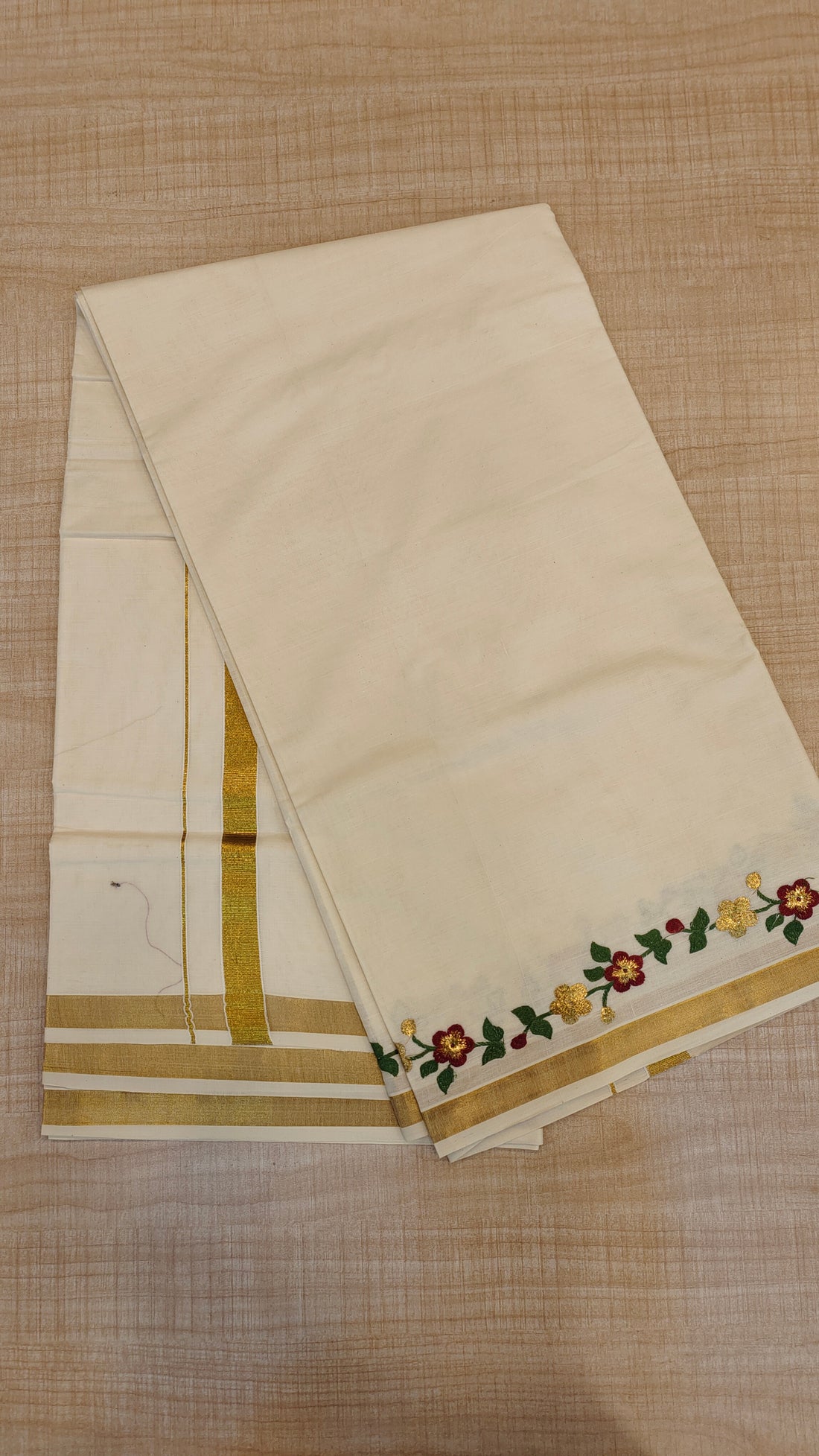 Cotton kerala saree with floral embroideryΒ
