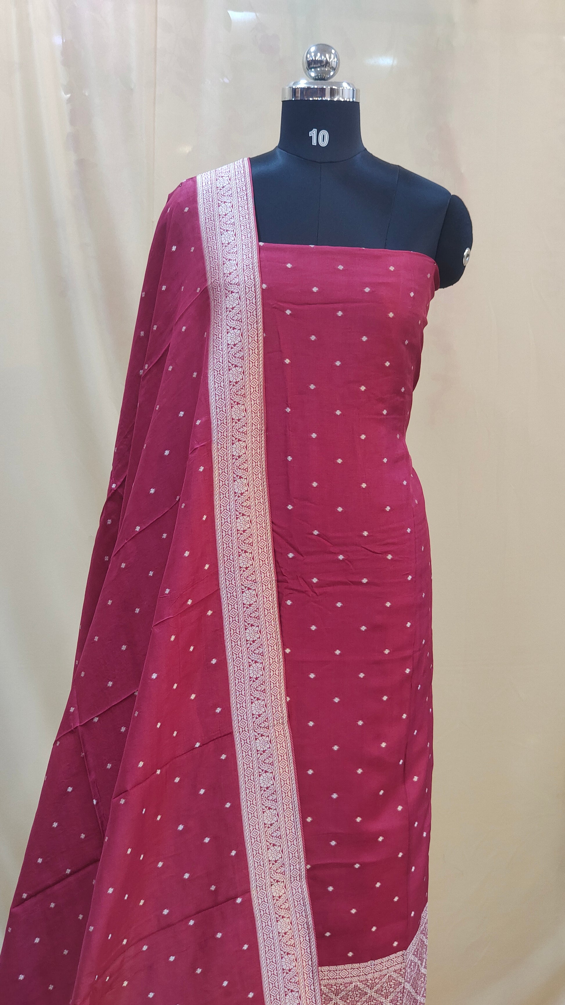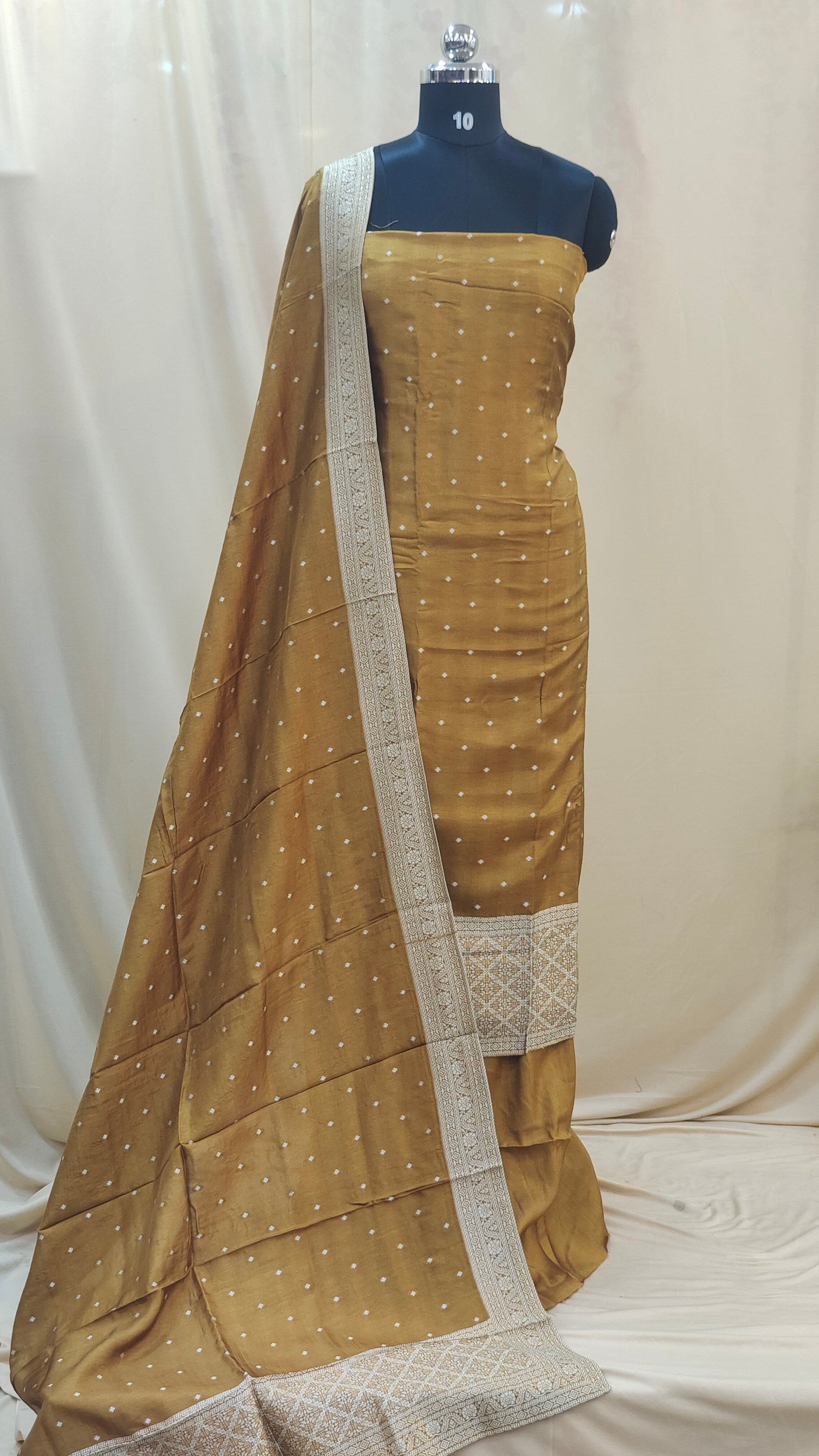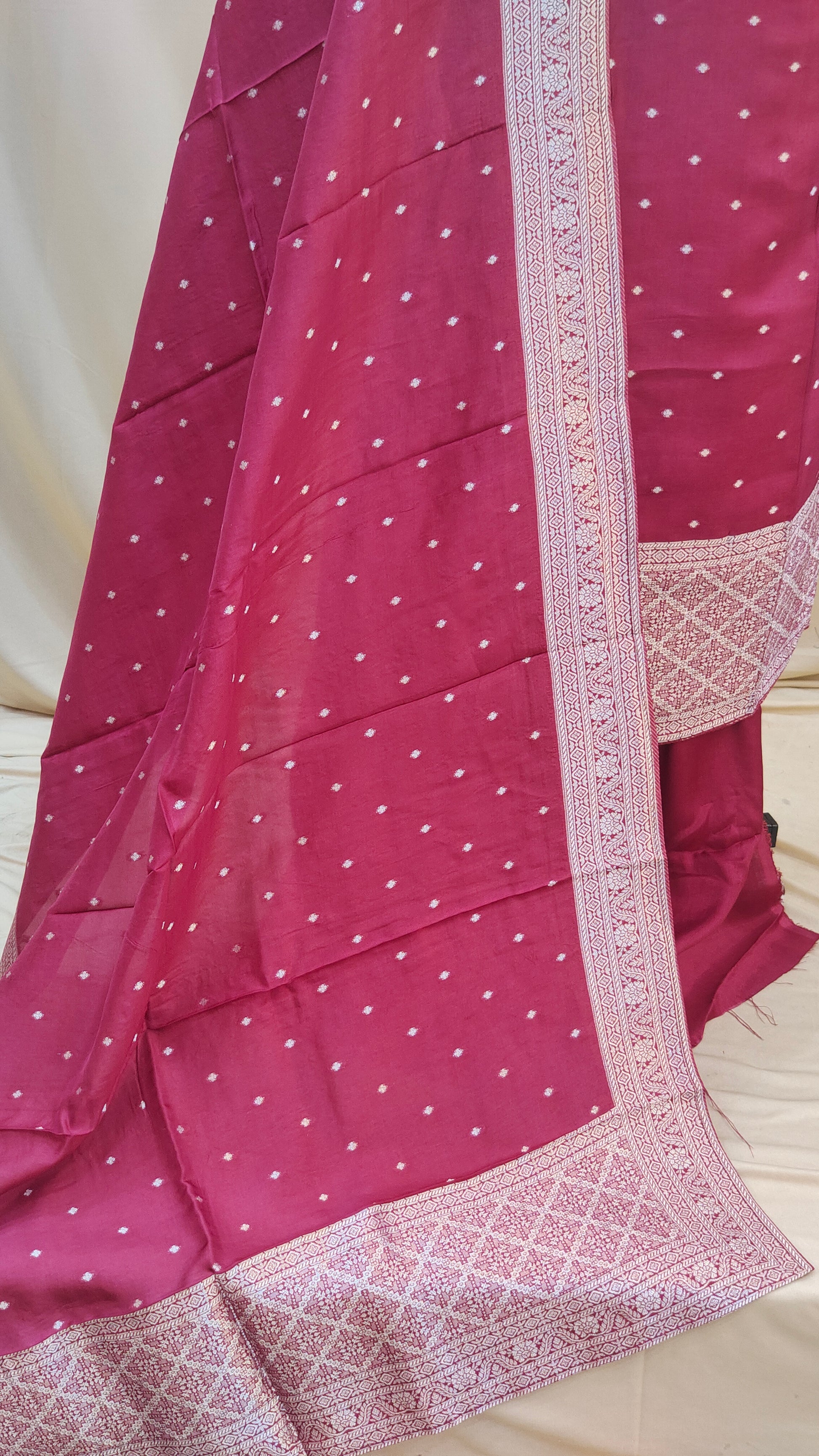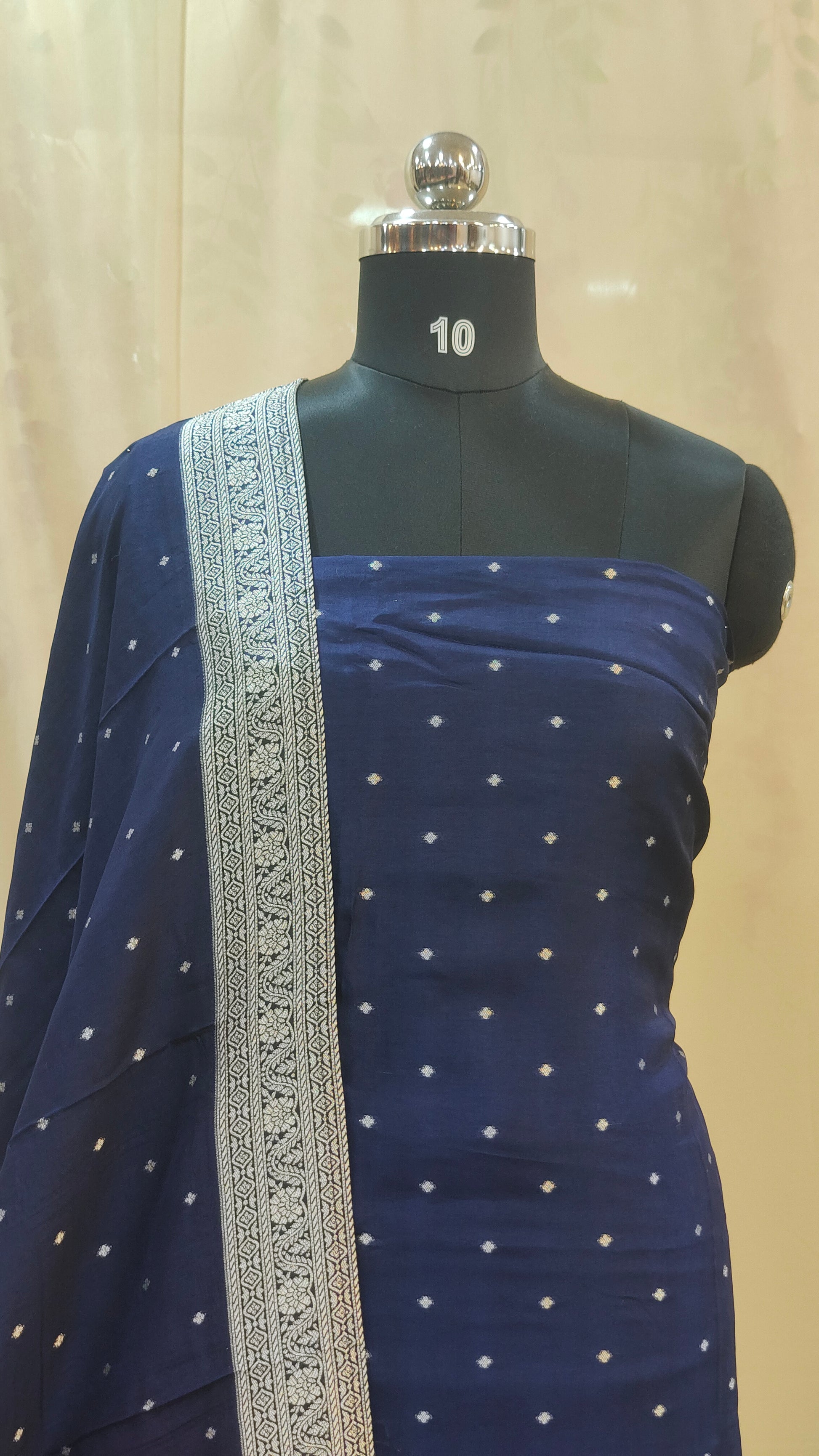 Dupatta : Paired with a banarasi dupatta adding a soft and graceful contrast to the shimmering banarasi top.