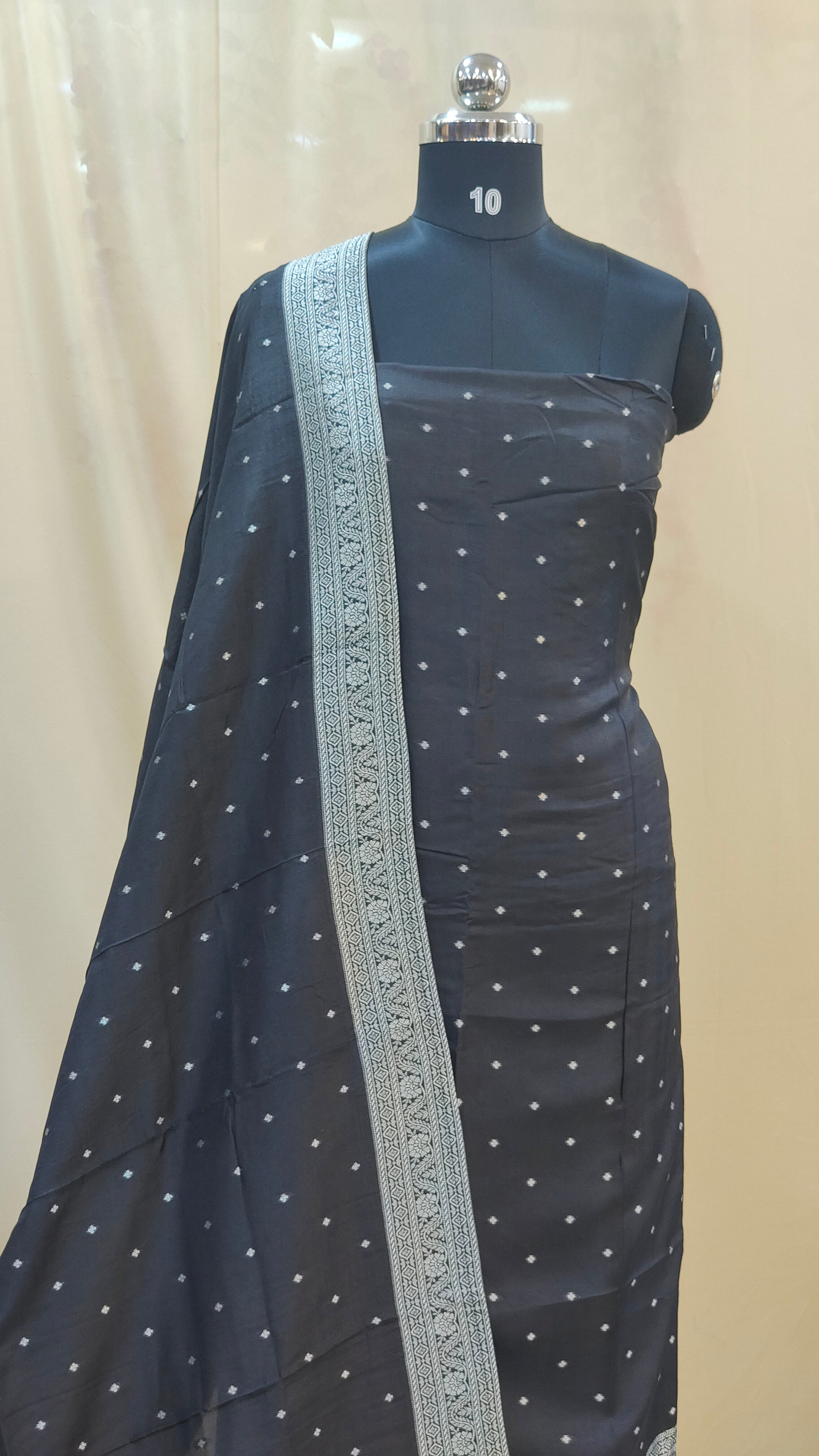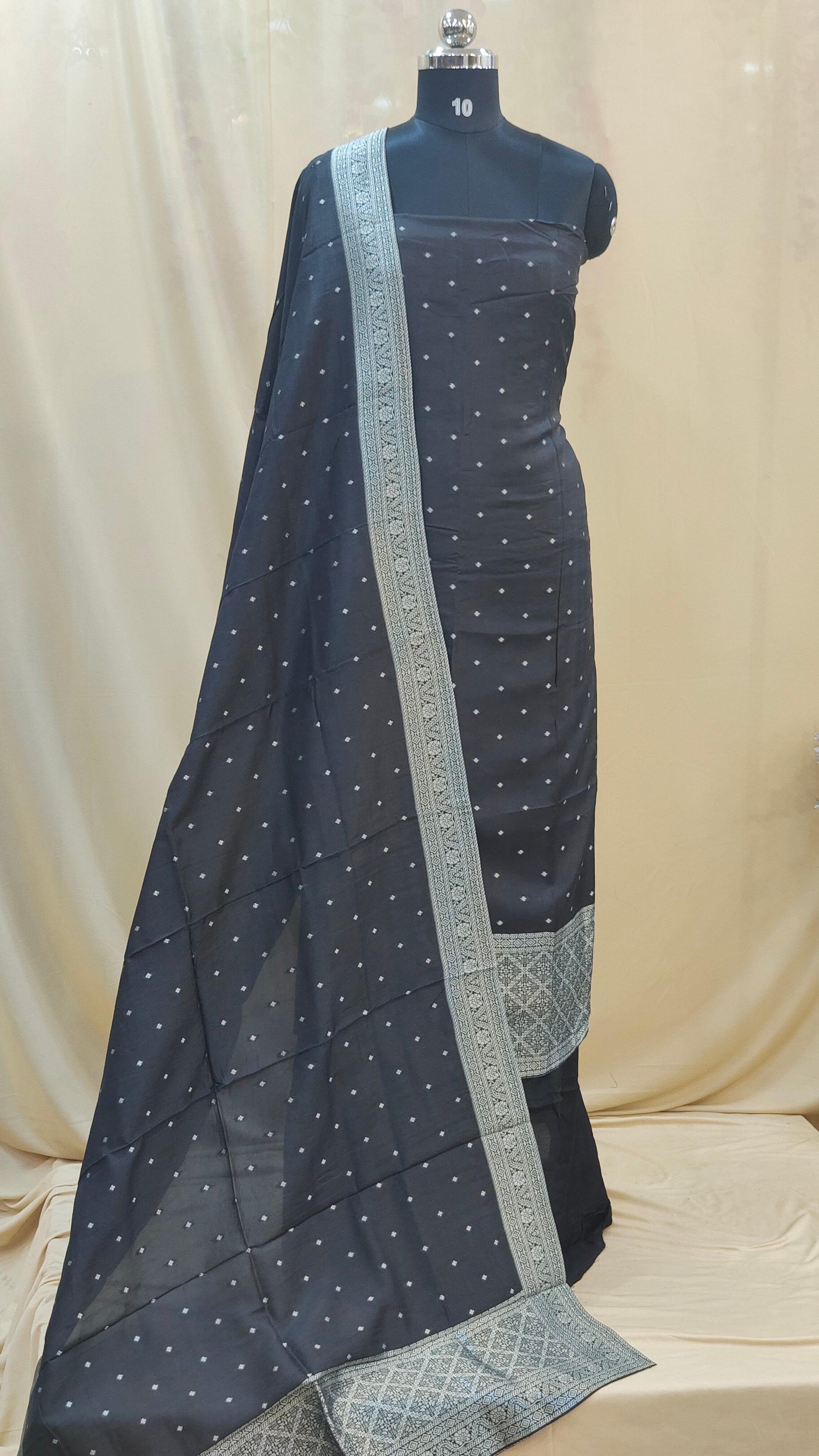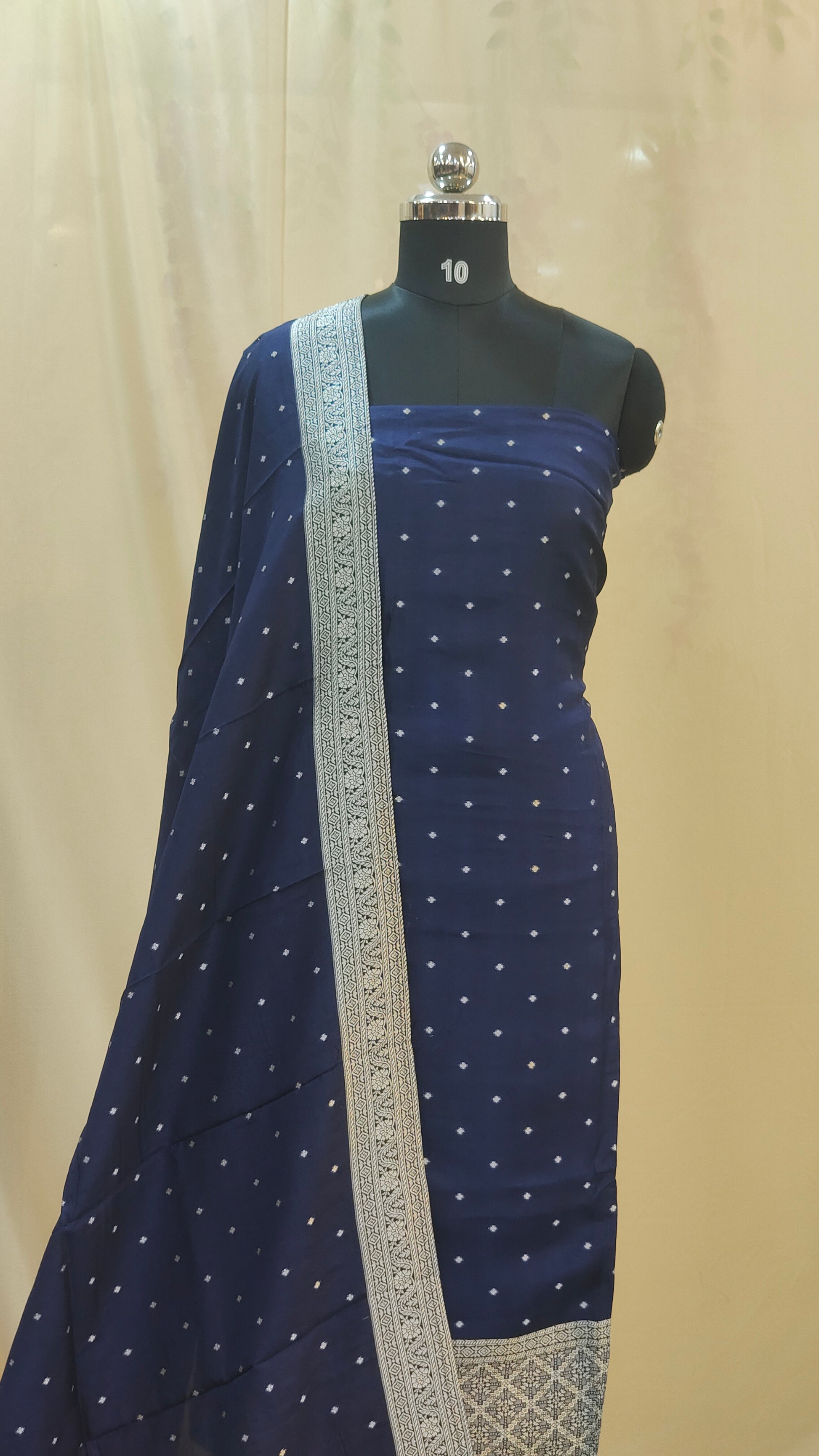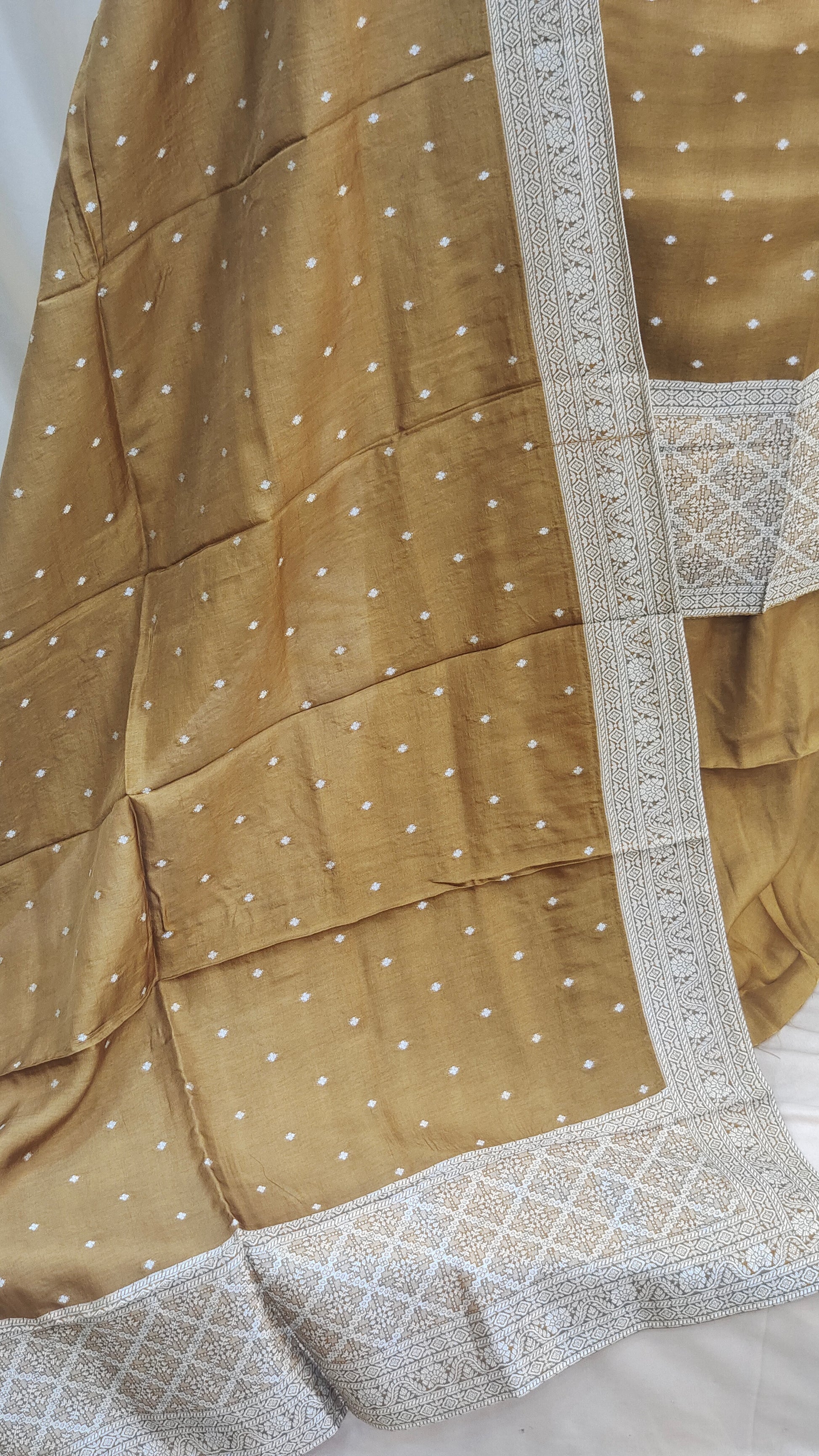 Dupatta : Paired with a banarasi dupatta adding a soft and graceful contrast to the shimmering banarasi top.