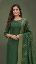 Fabric : Crafted in rich banarasi fabric featuring golden motifs all over the body portion that exude a royal touch.