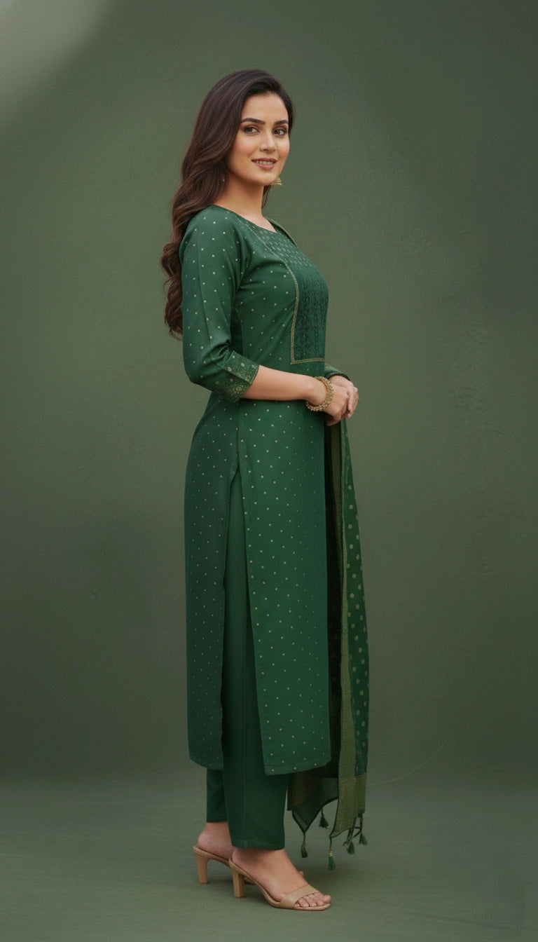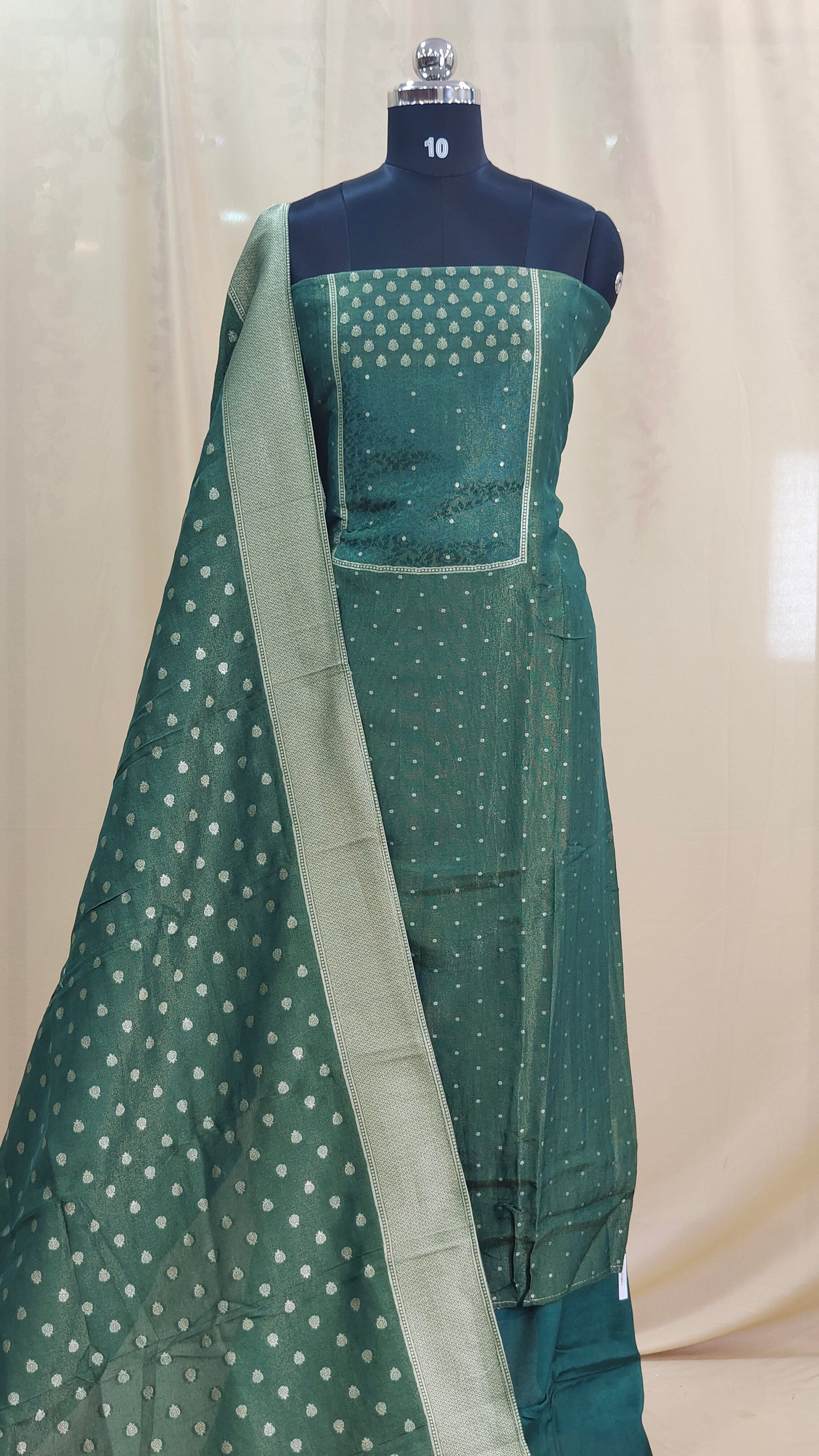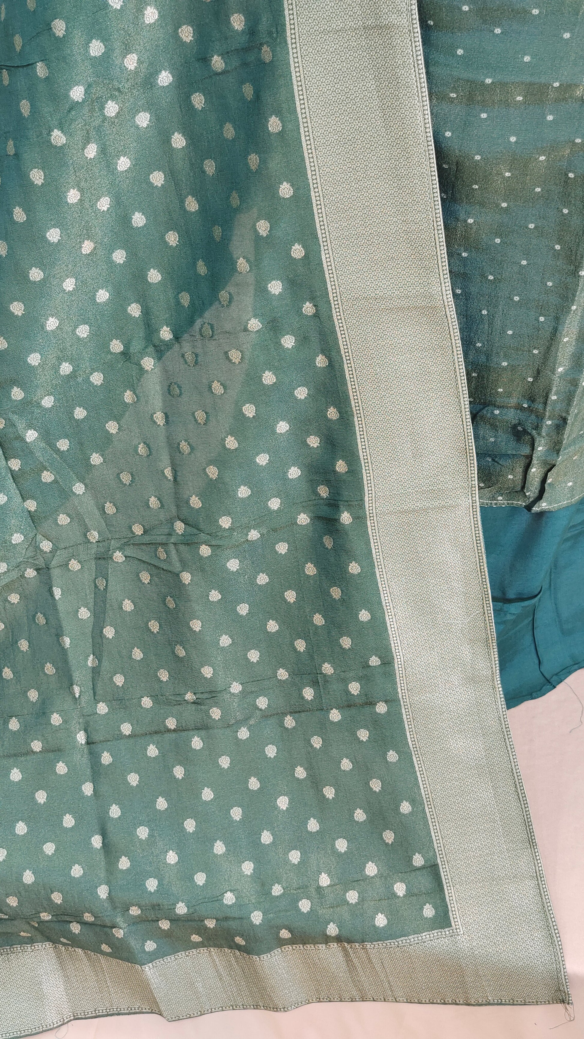 Dupatta : Paired with a banarasi dupatta adding a soft and graceful contrast to the shimmering banarasi top.