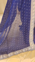 Fabric : Crafted in rich banarasi fabric featuring silver motifs all over the body portion that exude a royal touch.