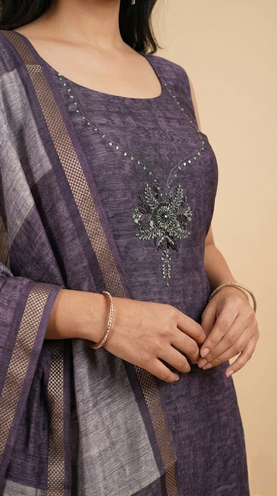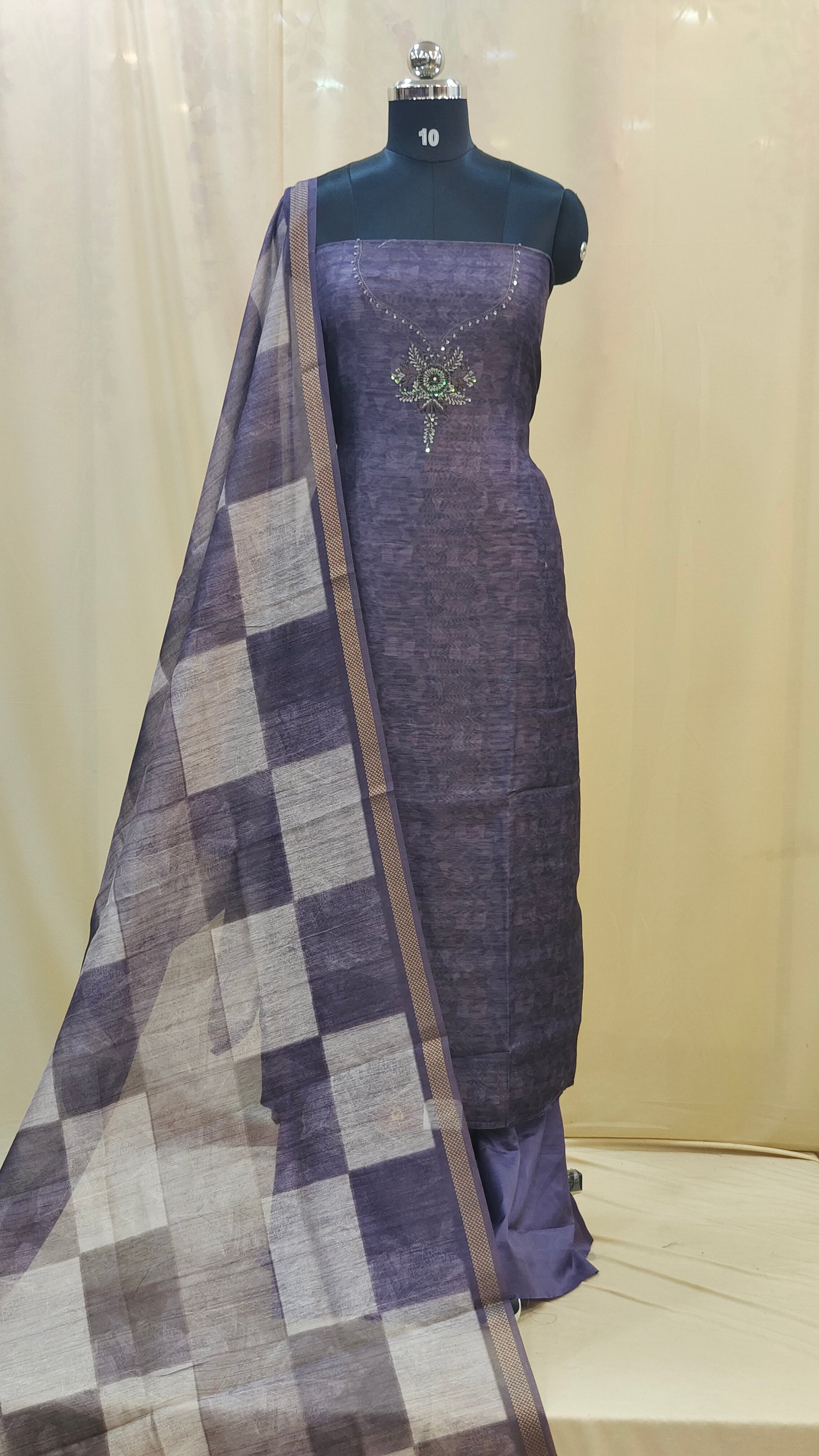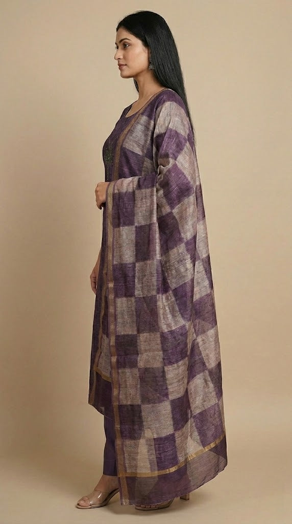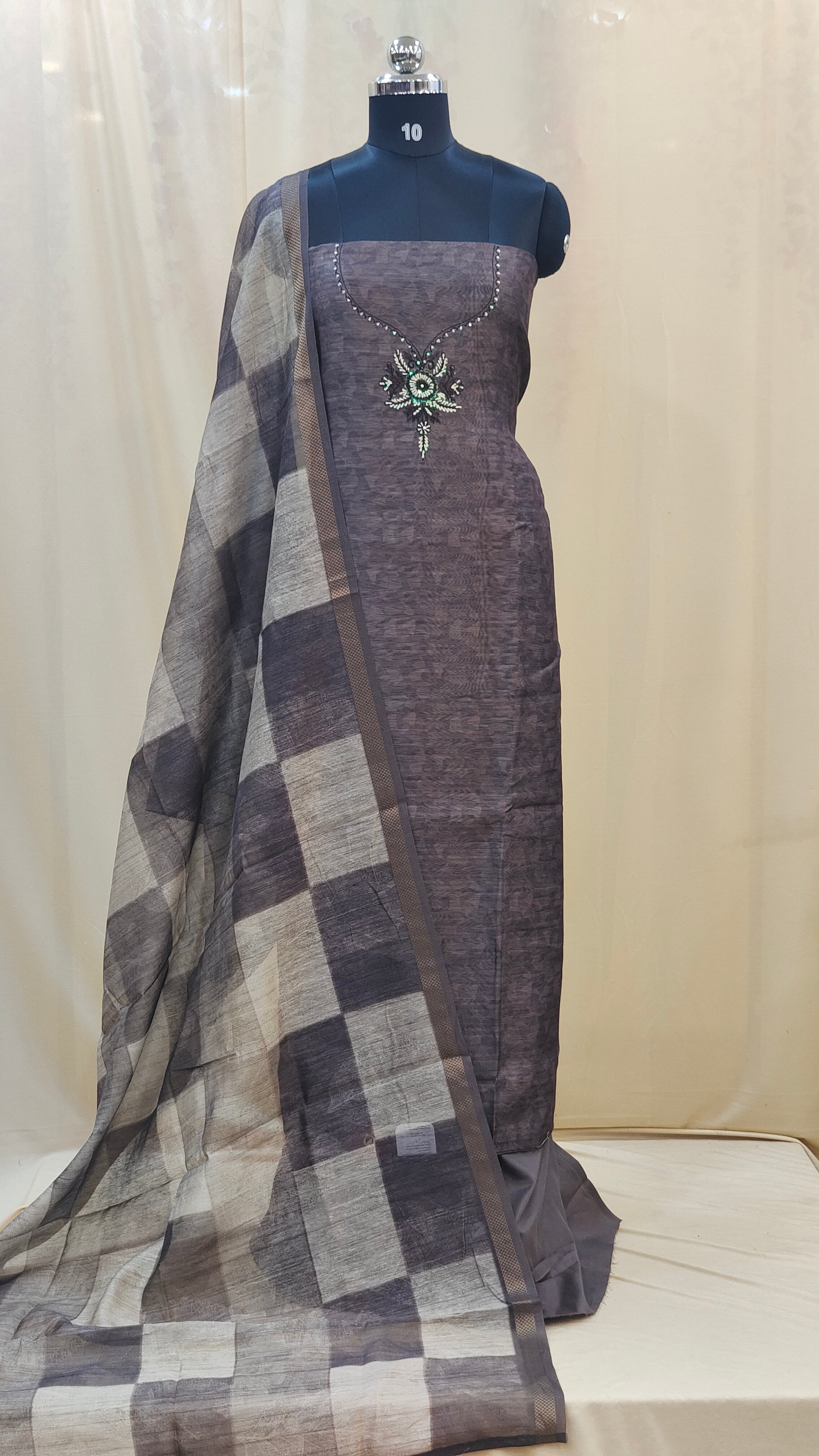 Fabric : Premium chanderi fabric- lightweight soft texture with a subtle sheen that gives an elegant and rich look.