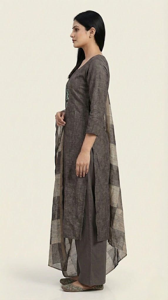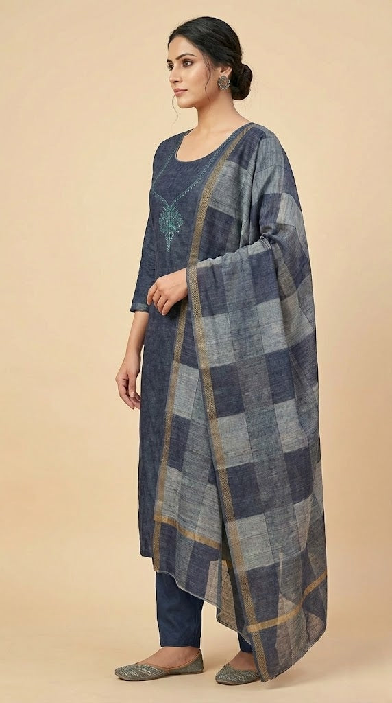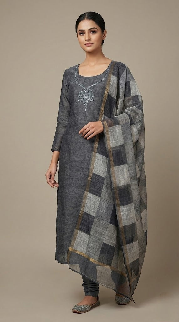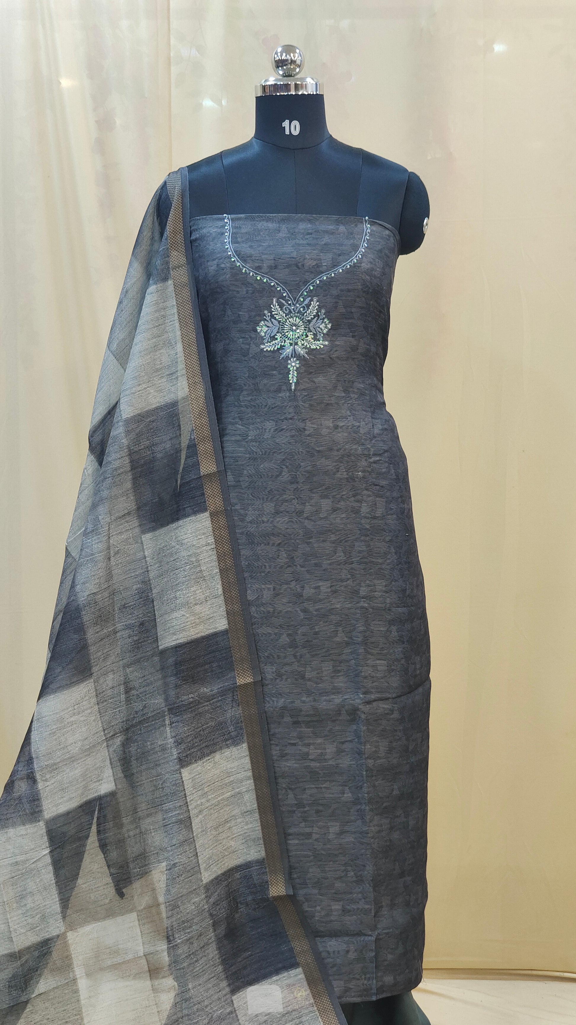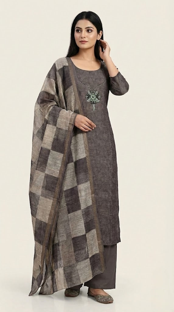 Fabric : Premium chanderi fabric- lightweight soft texture with a subtle sheen that gives an elegant and rich look.