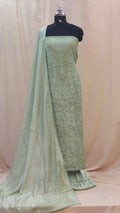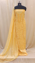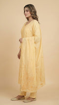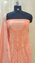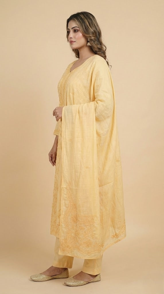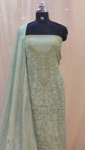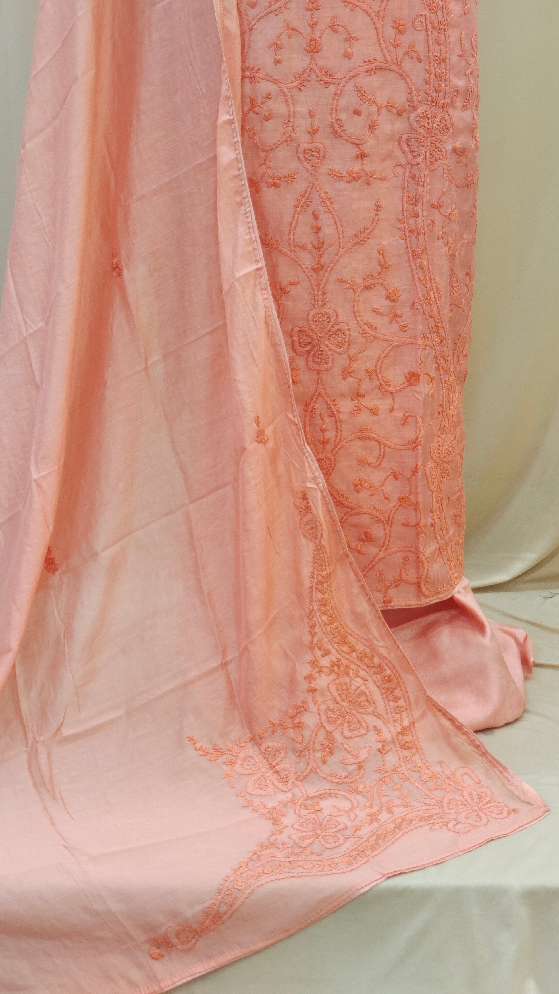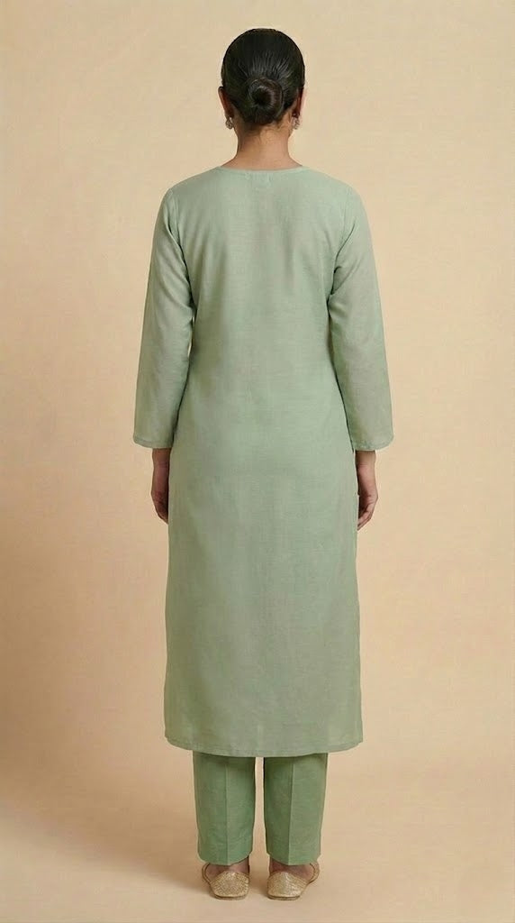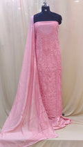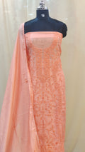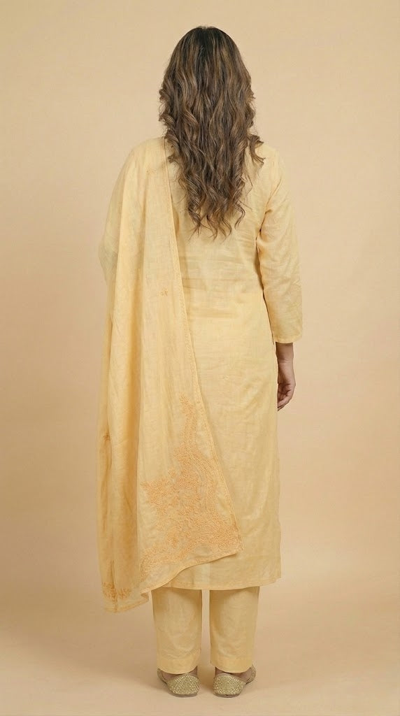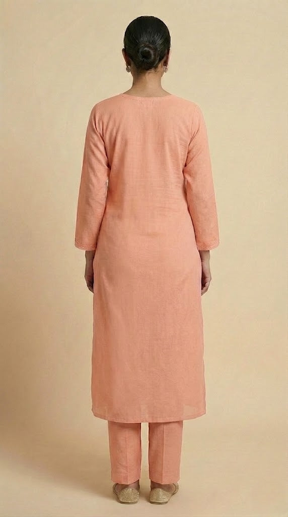 - Body area features scattered chikenkari embroidery for a refined look