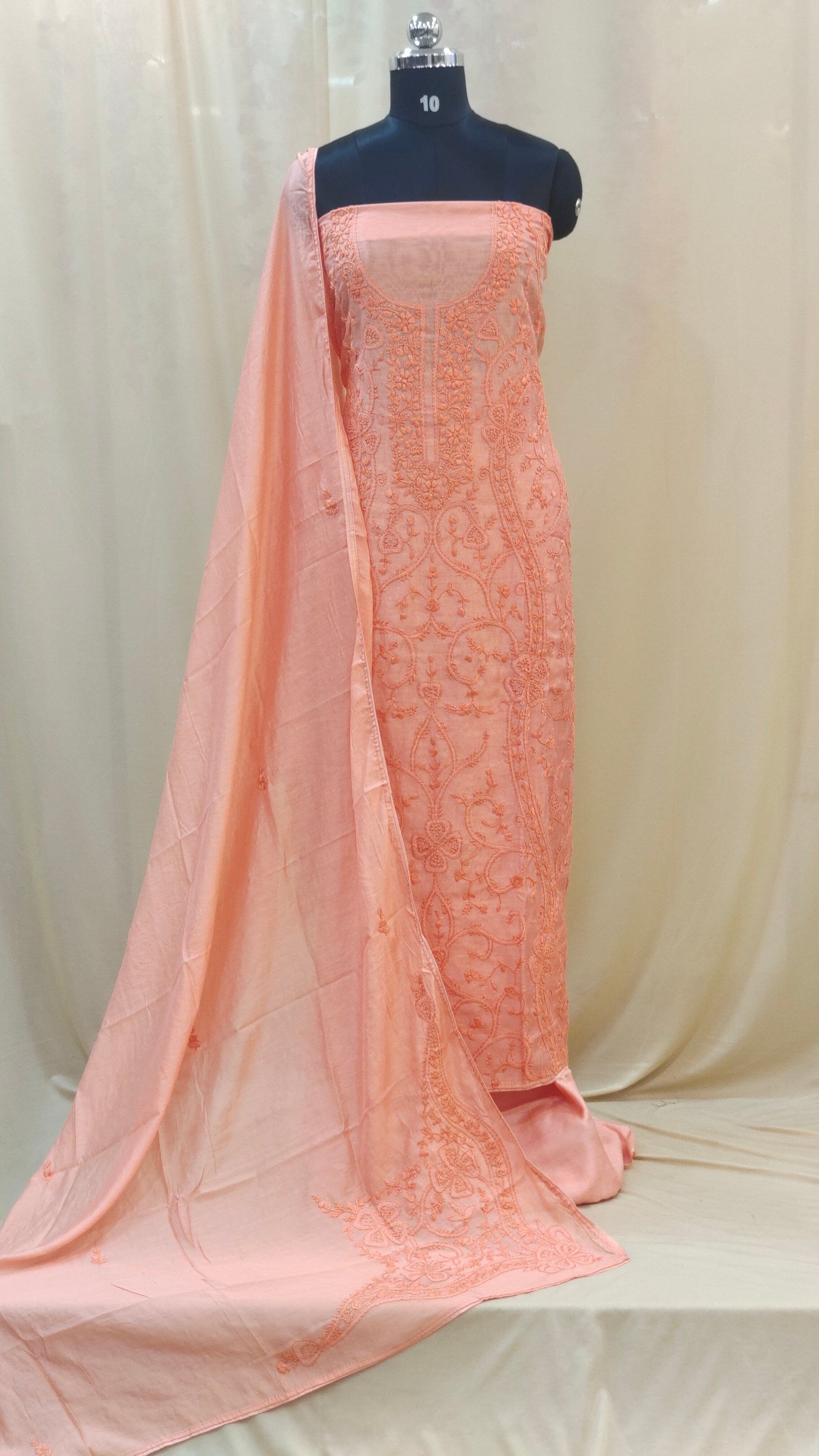 - Dupatta comes with scattered embroidery work adding a graceful finish
