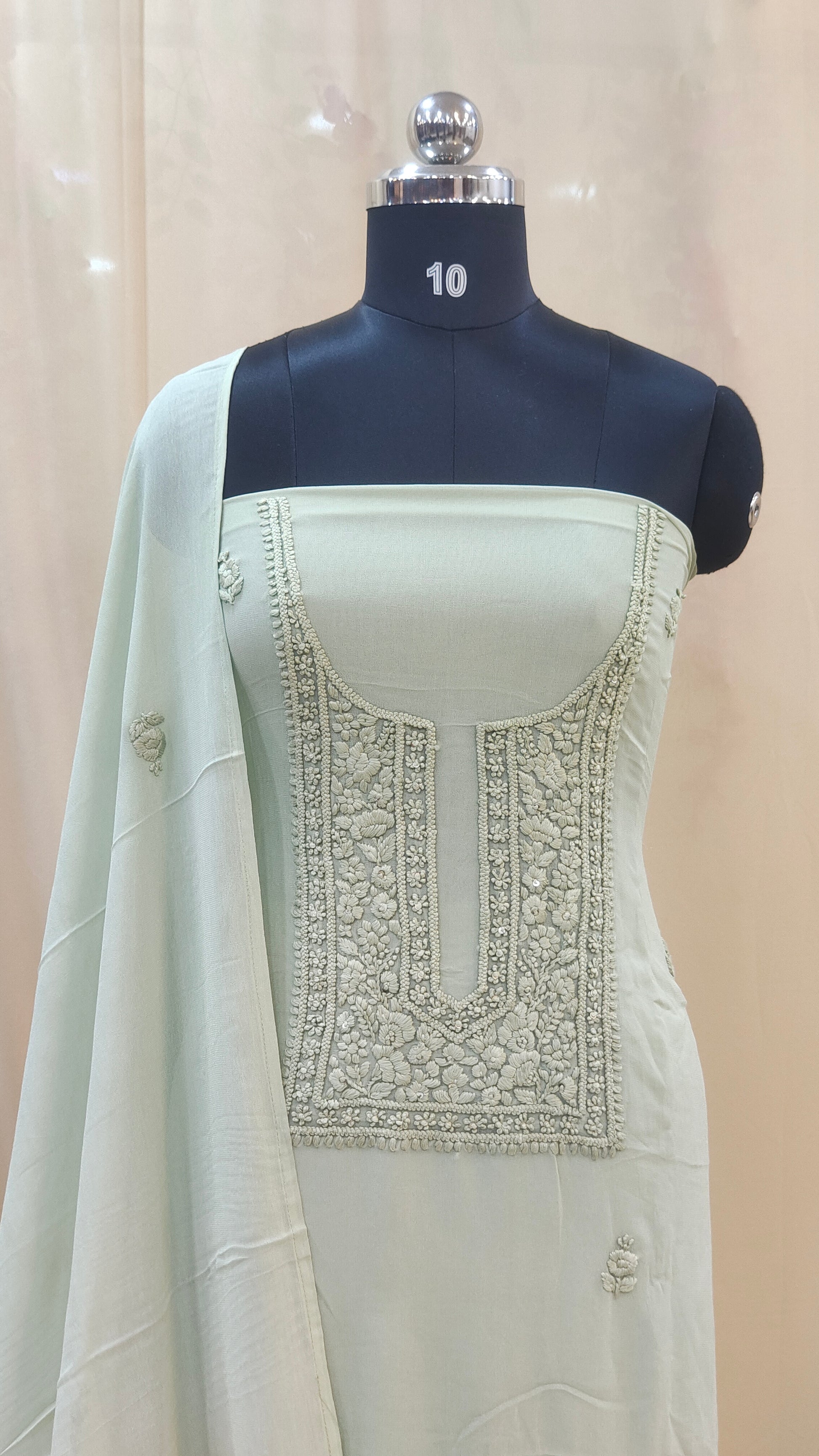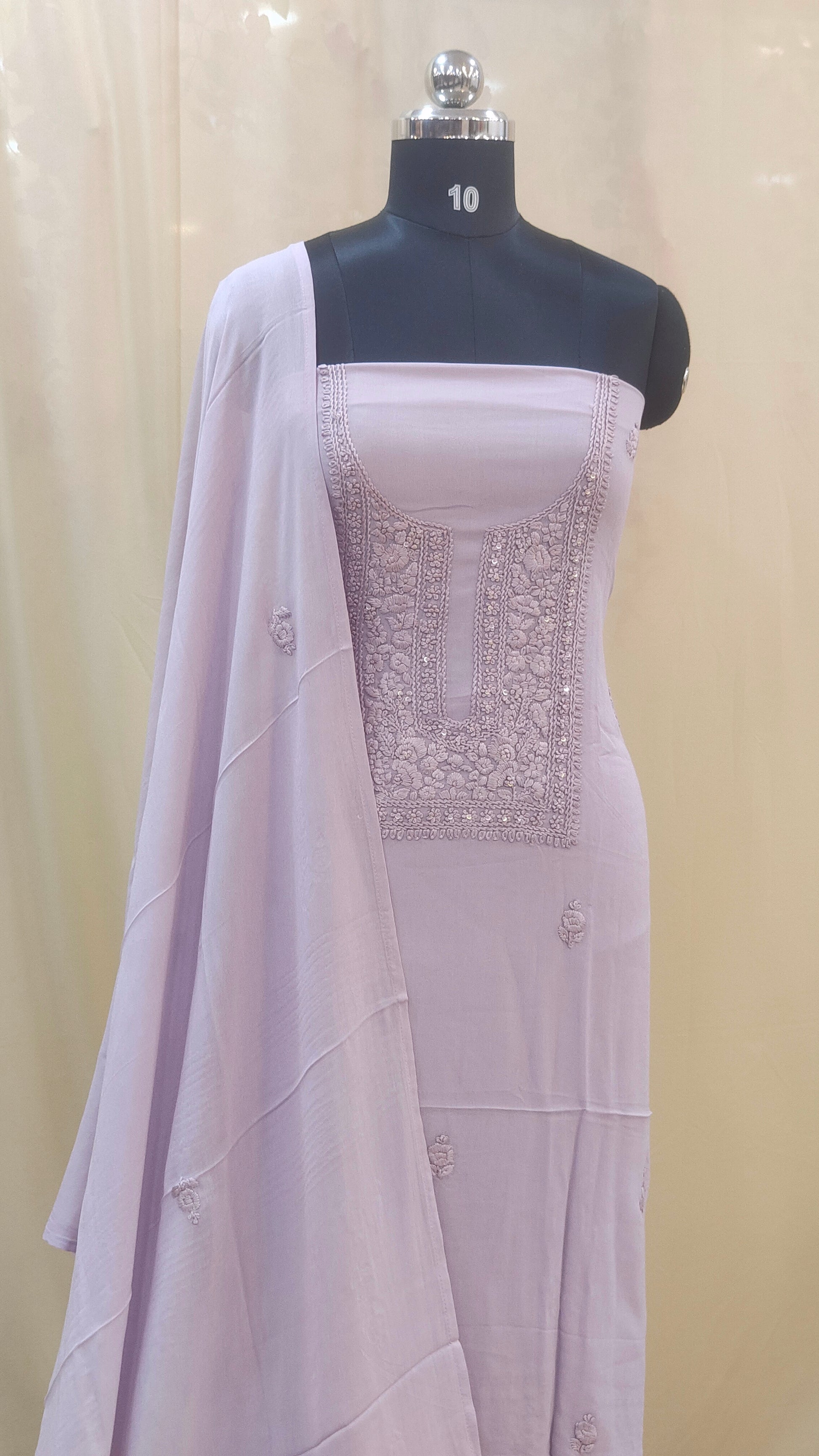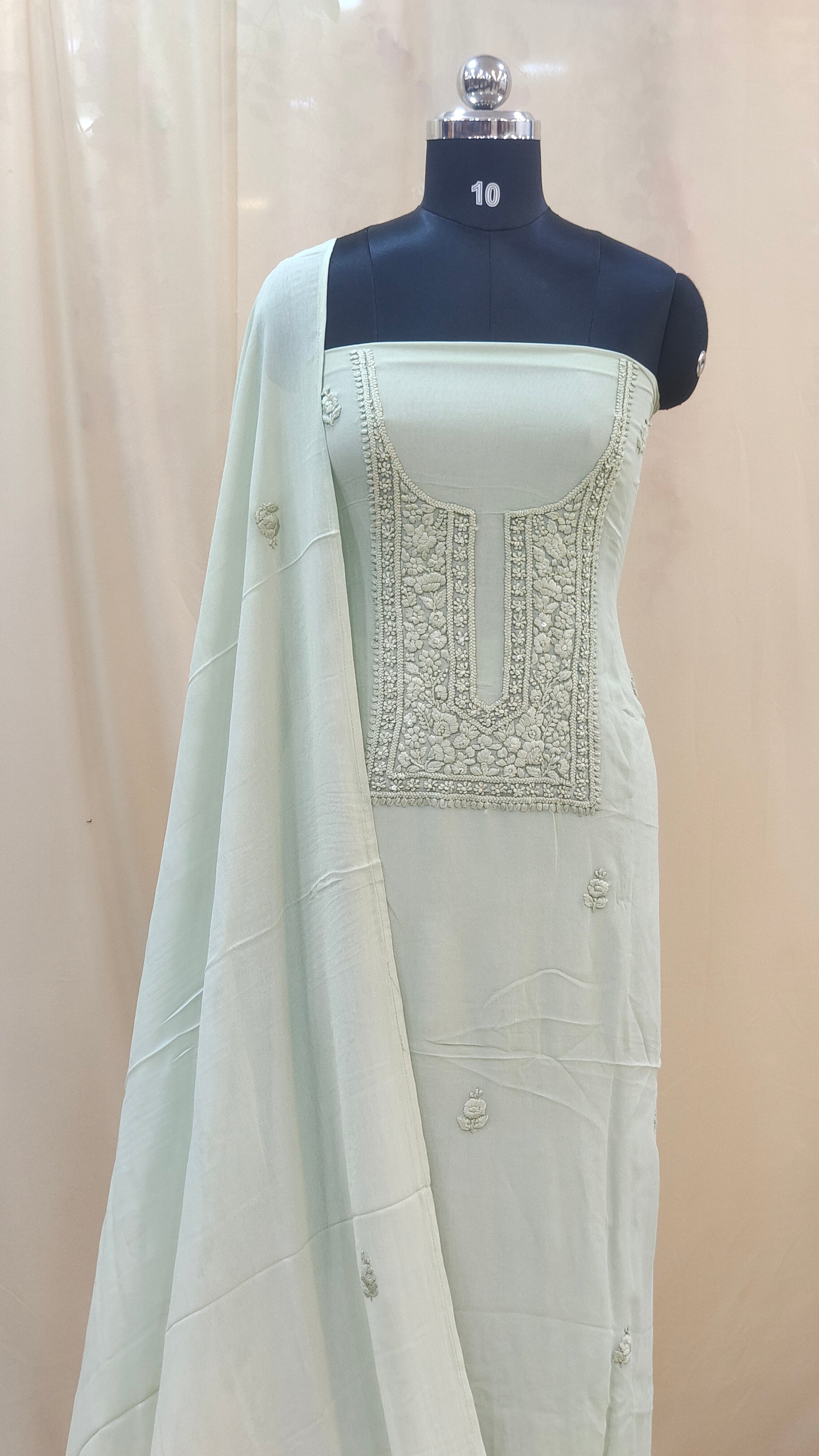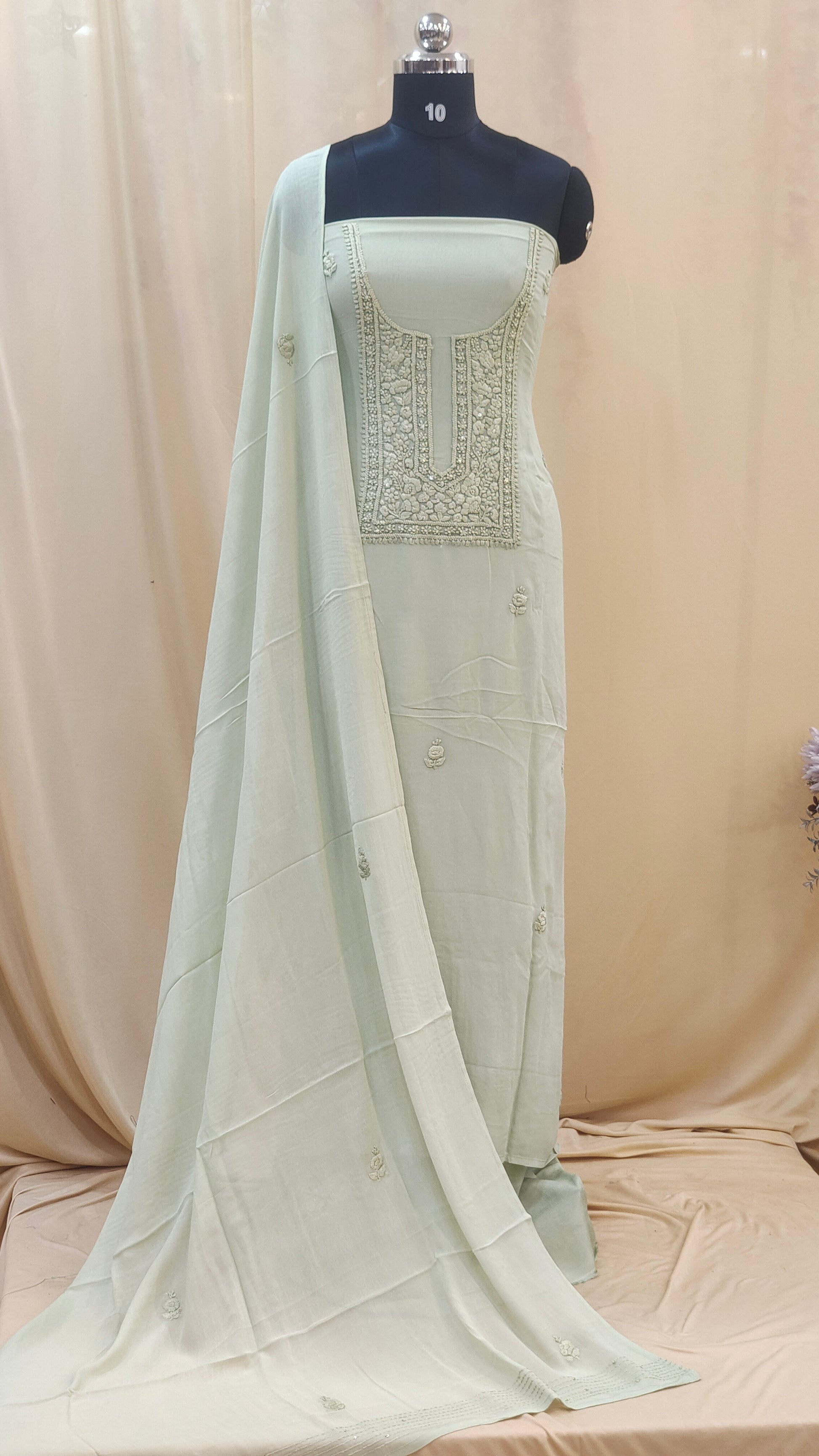- Dupatta comes with scattered embroidery work adding a graceful finish
