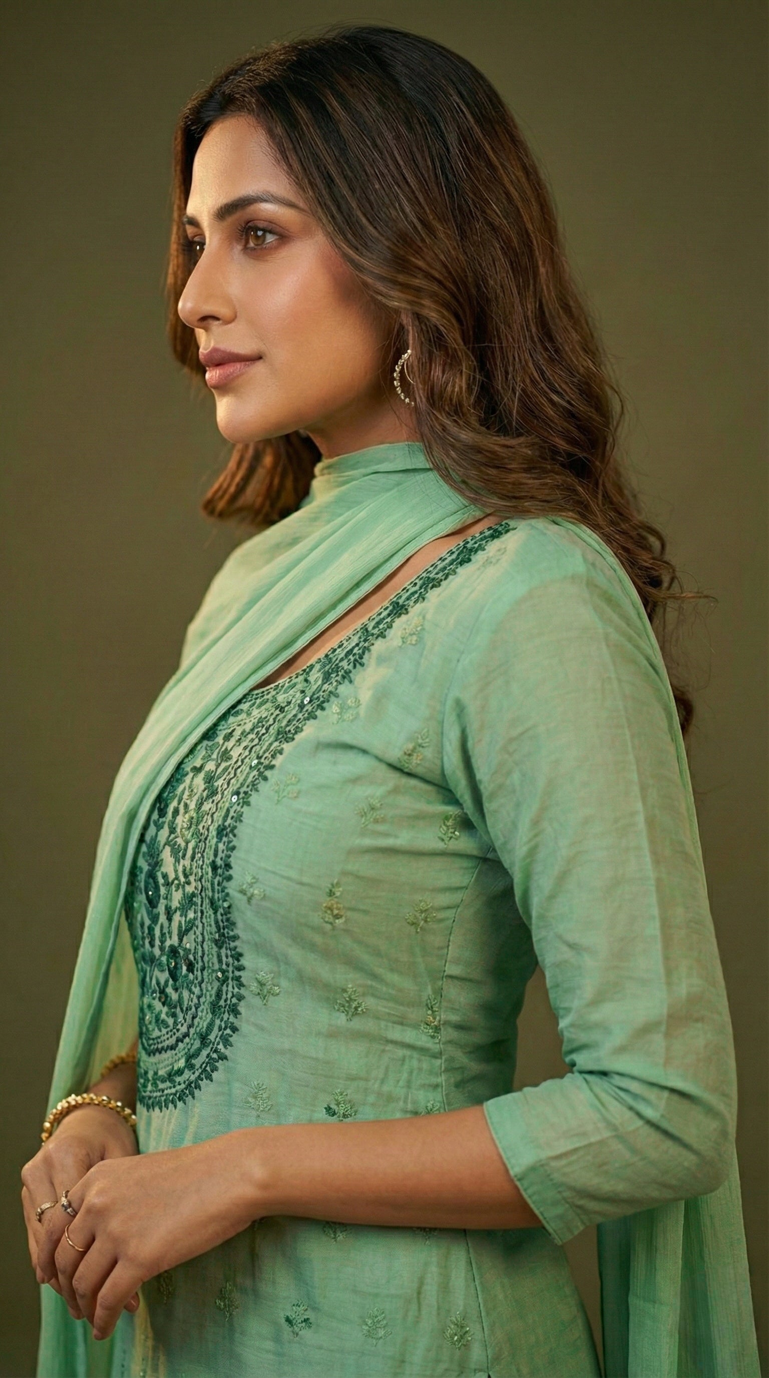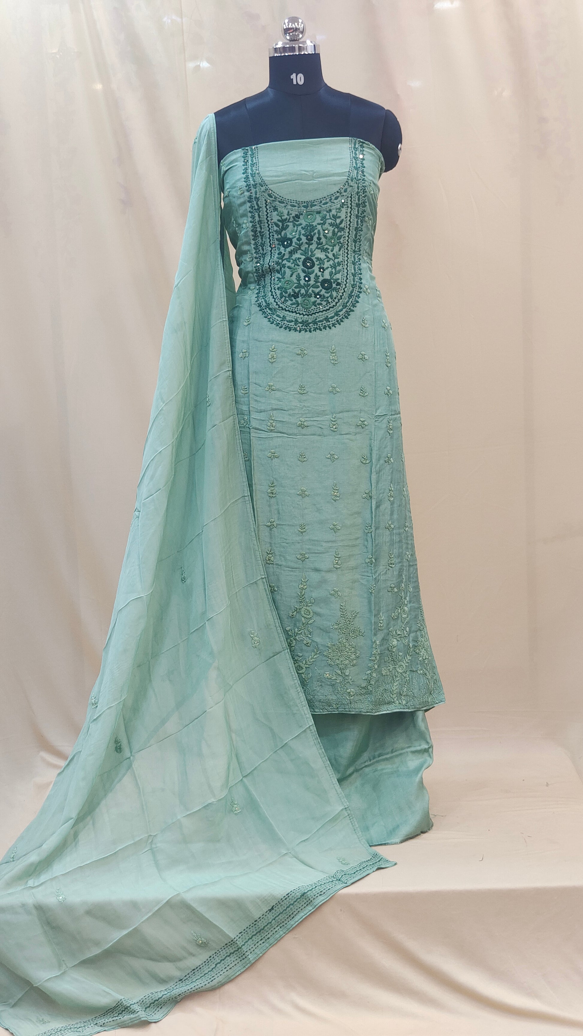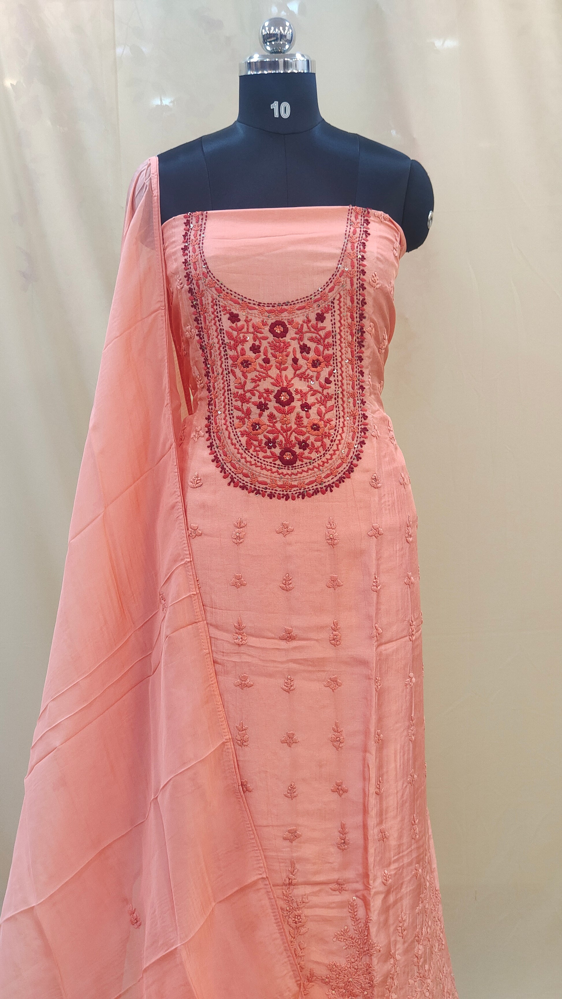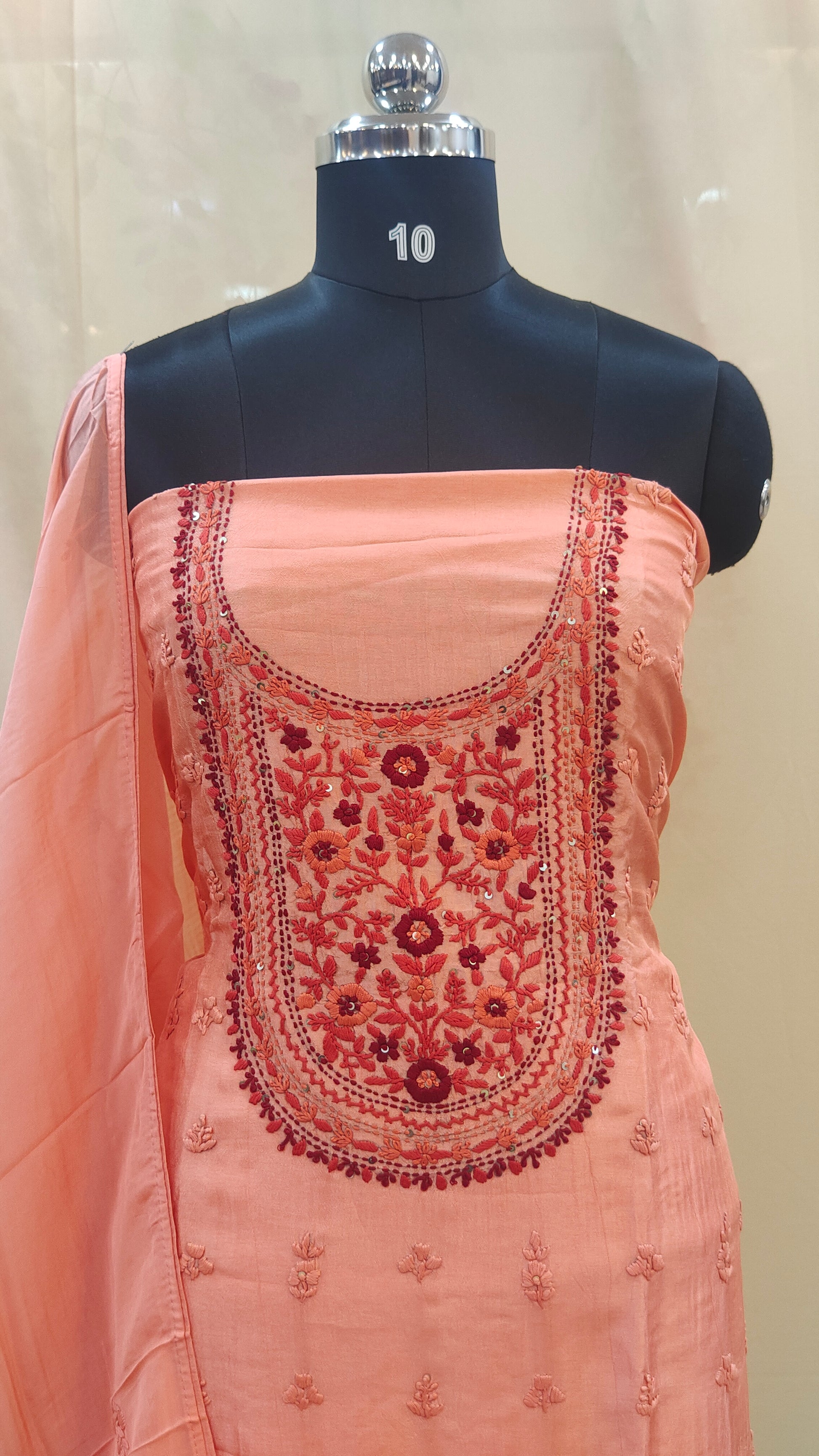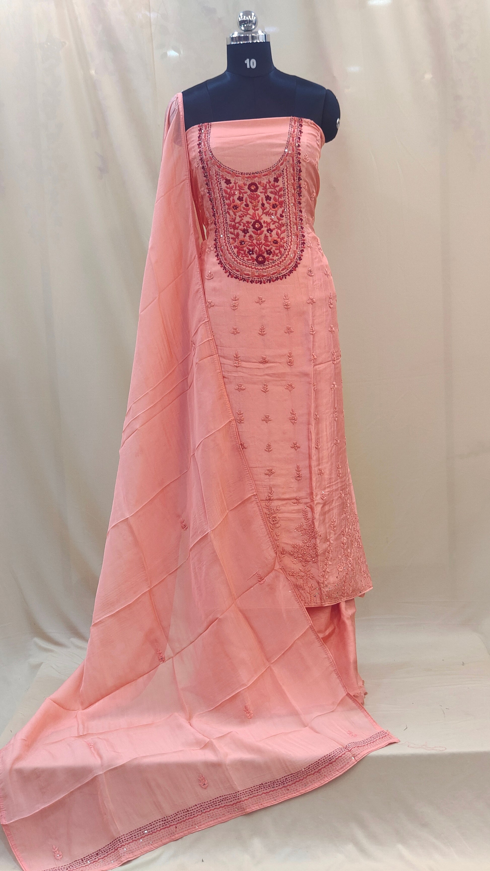 - Dupatta comes with scattered embroidery work adding a graceful finish