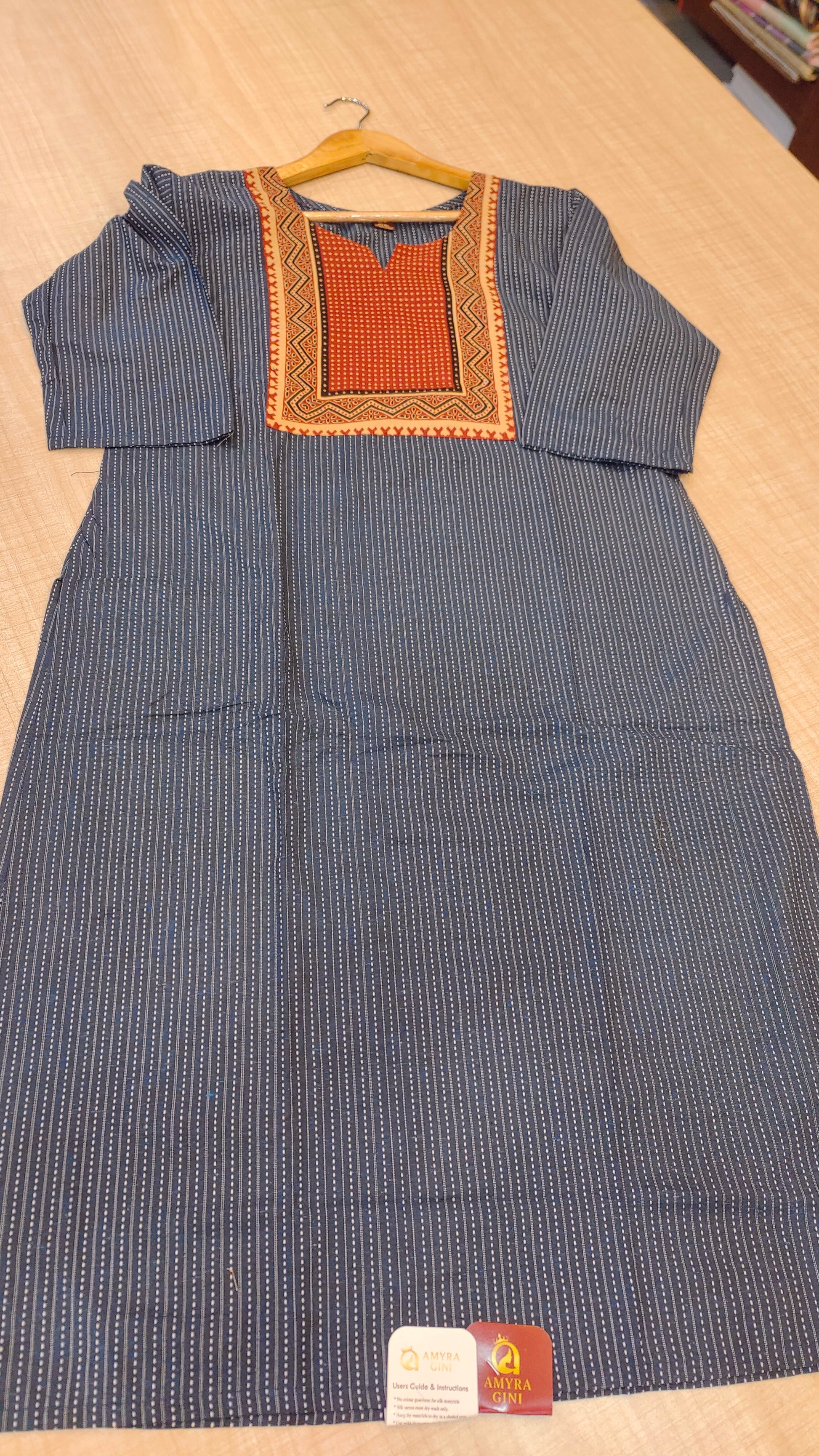 - Do not iron or scrub directly on print /embroidery / hand work items.