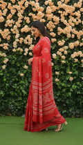 Fabric : The graceful cotton saree comes in a red shade exuding a soft and elegant charm.