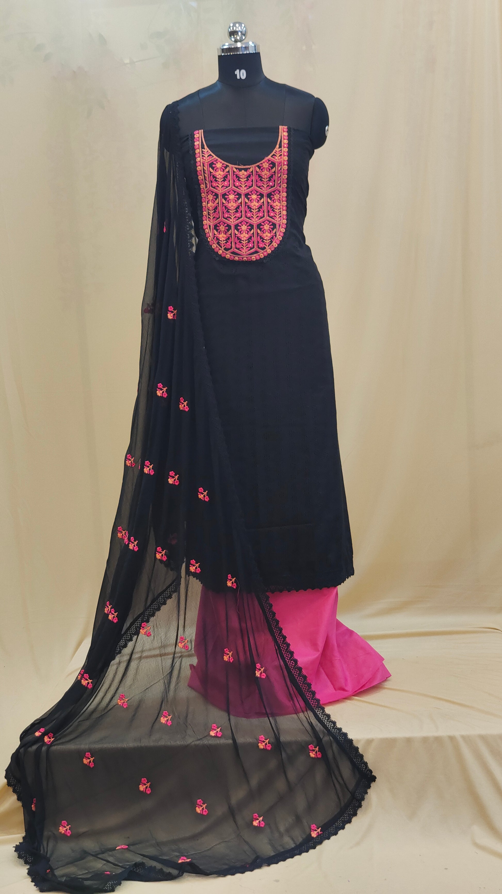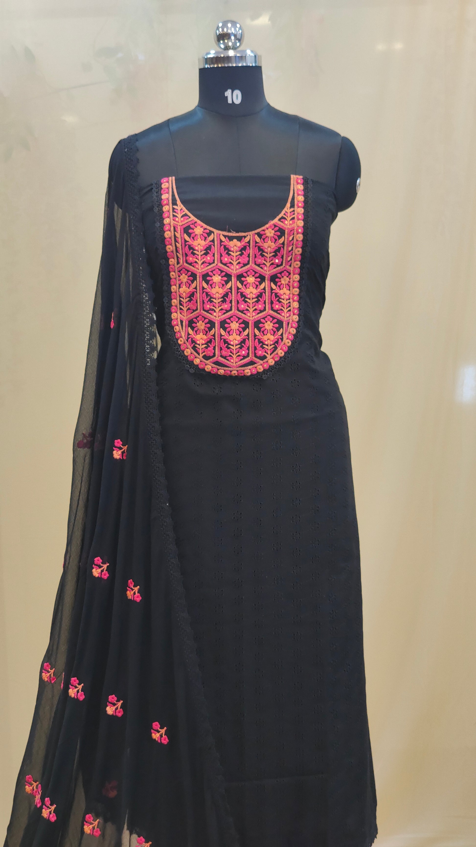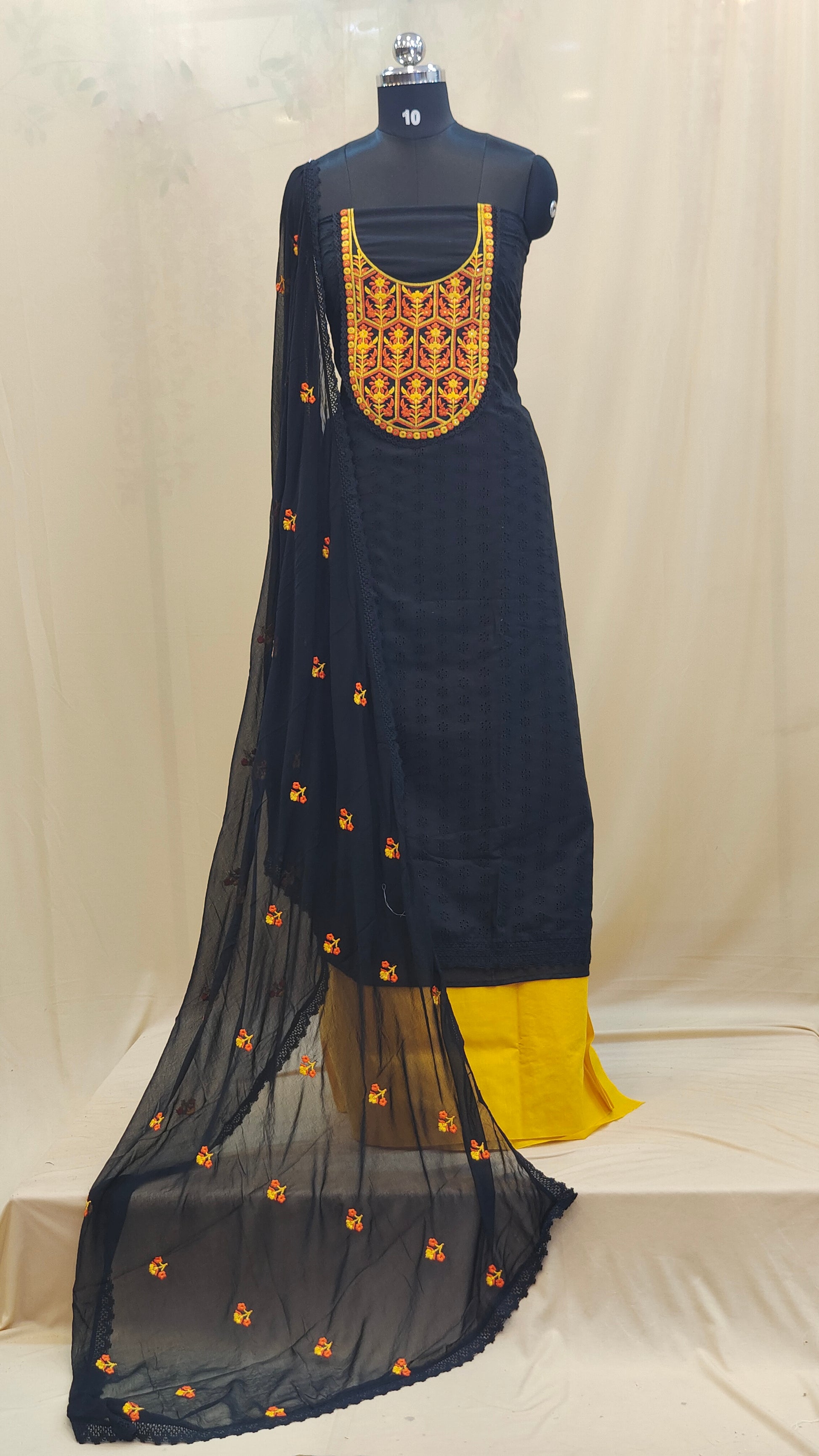 Design : Embroidered yoke & dupatta motifs