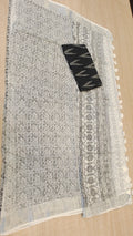 Design : The floral black prints on the linen drape give it a chic yet ethnic vibe striking the perfect balance between simplicity and sophistication.
