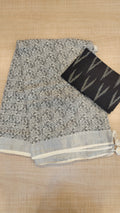 Blouse : The saree is paired with contrasting ikat cotton blouse piece.