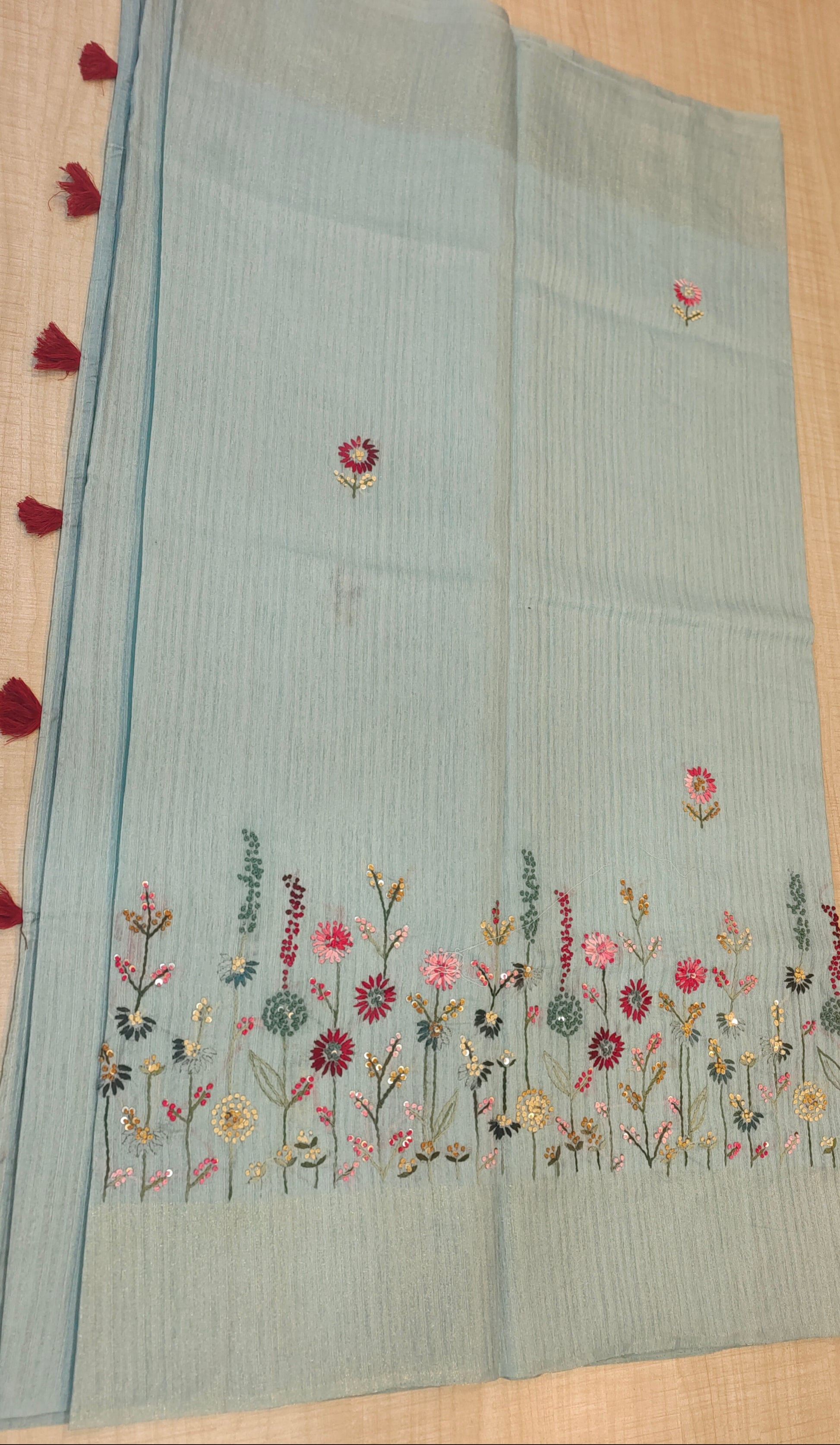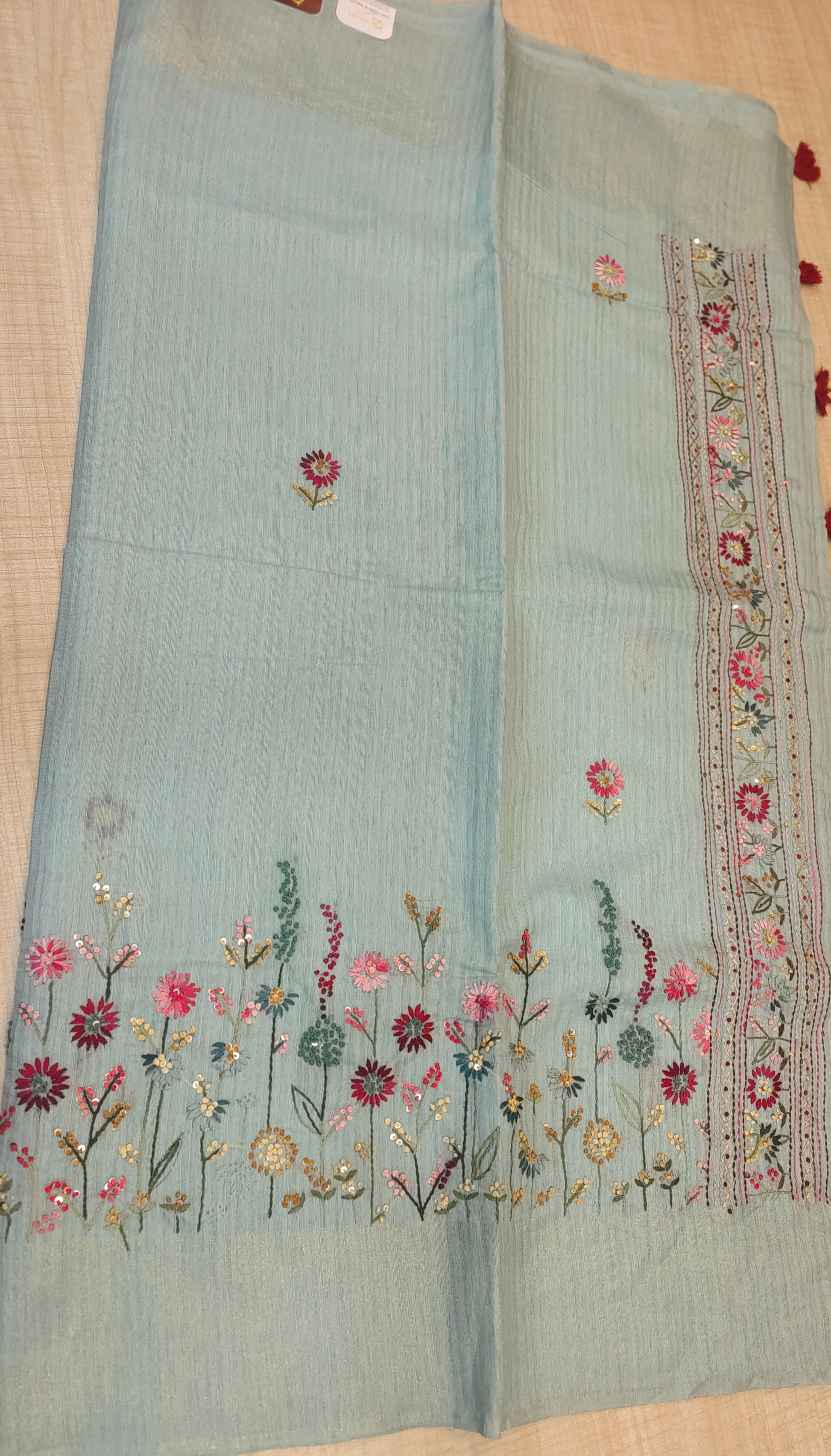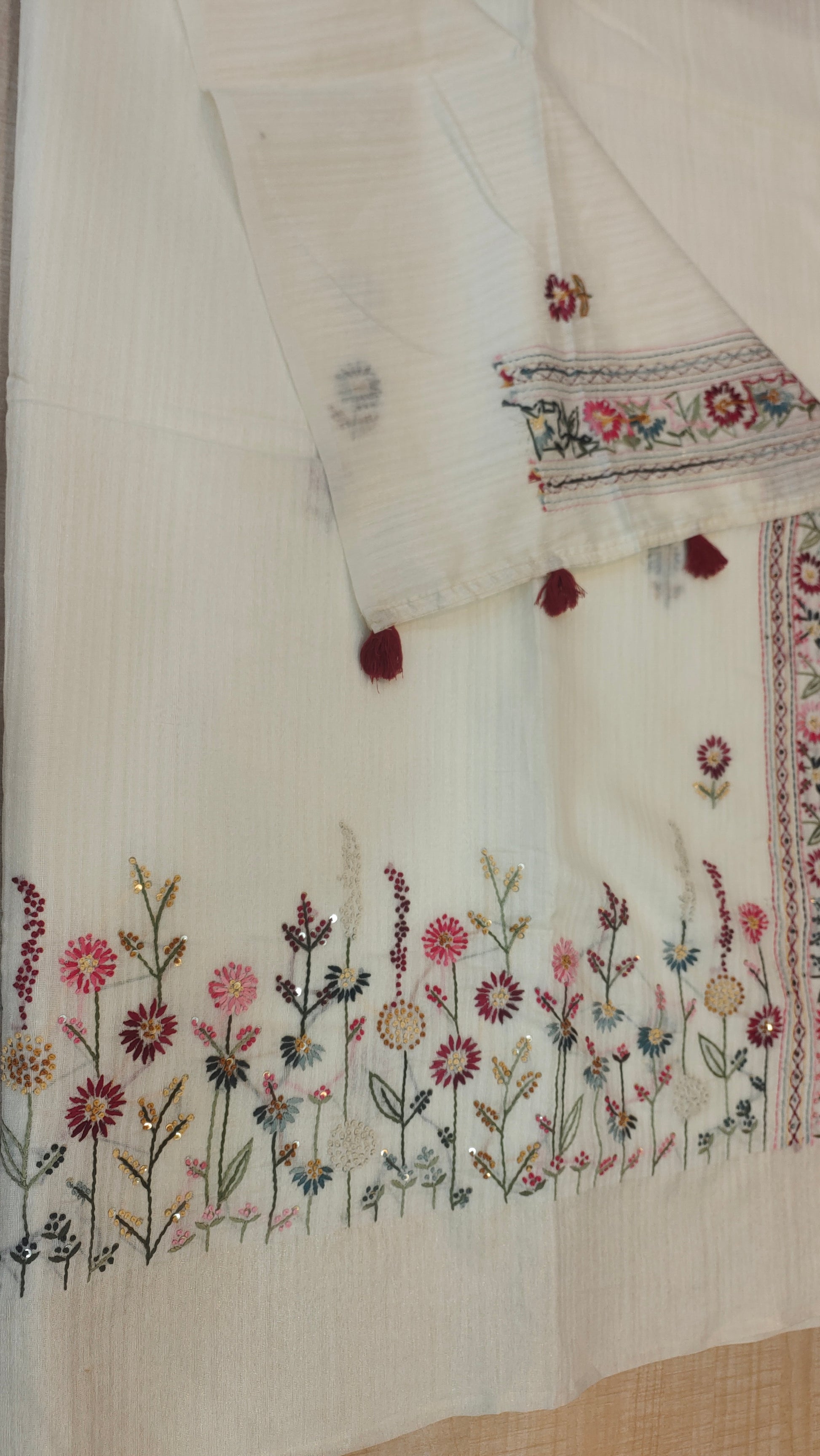 Design : Floral motifs with detailed embroidery work paired with subtle sequin highlights that add a gentle sparkle without overpowering the look.