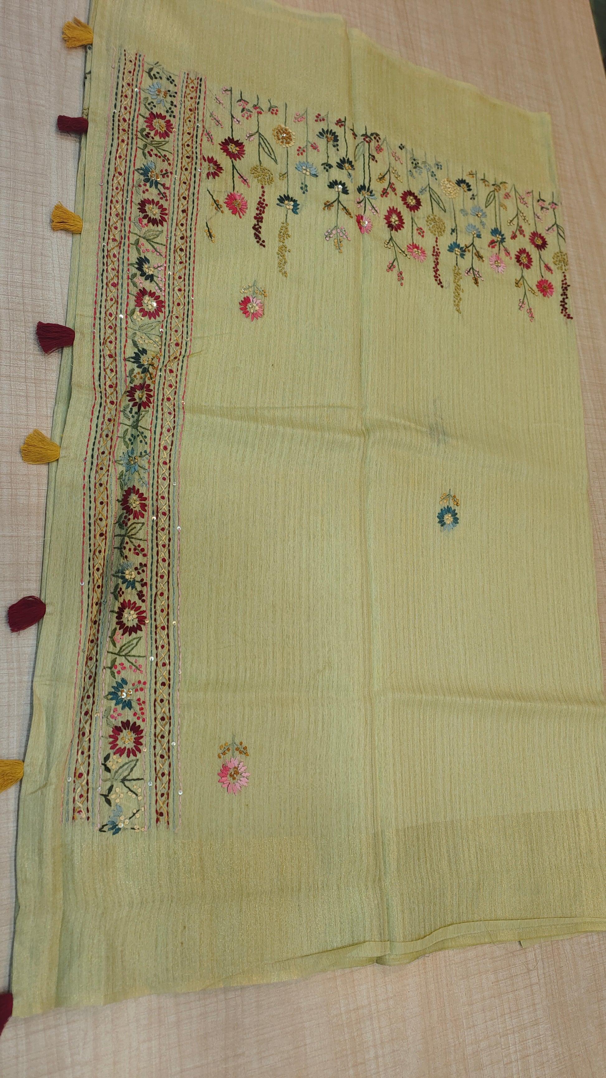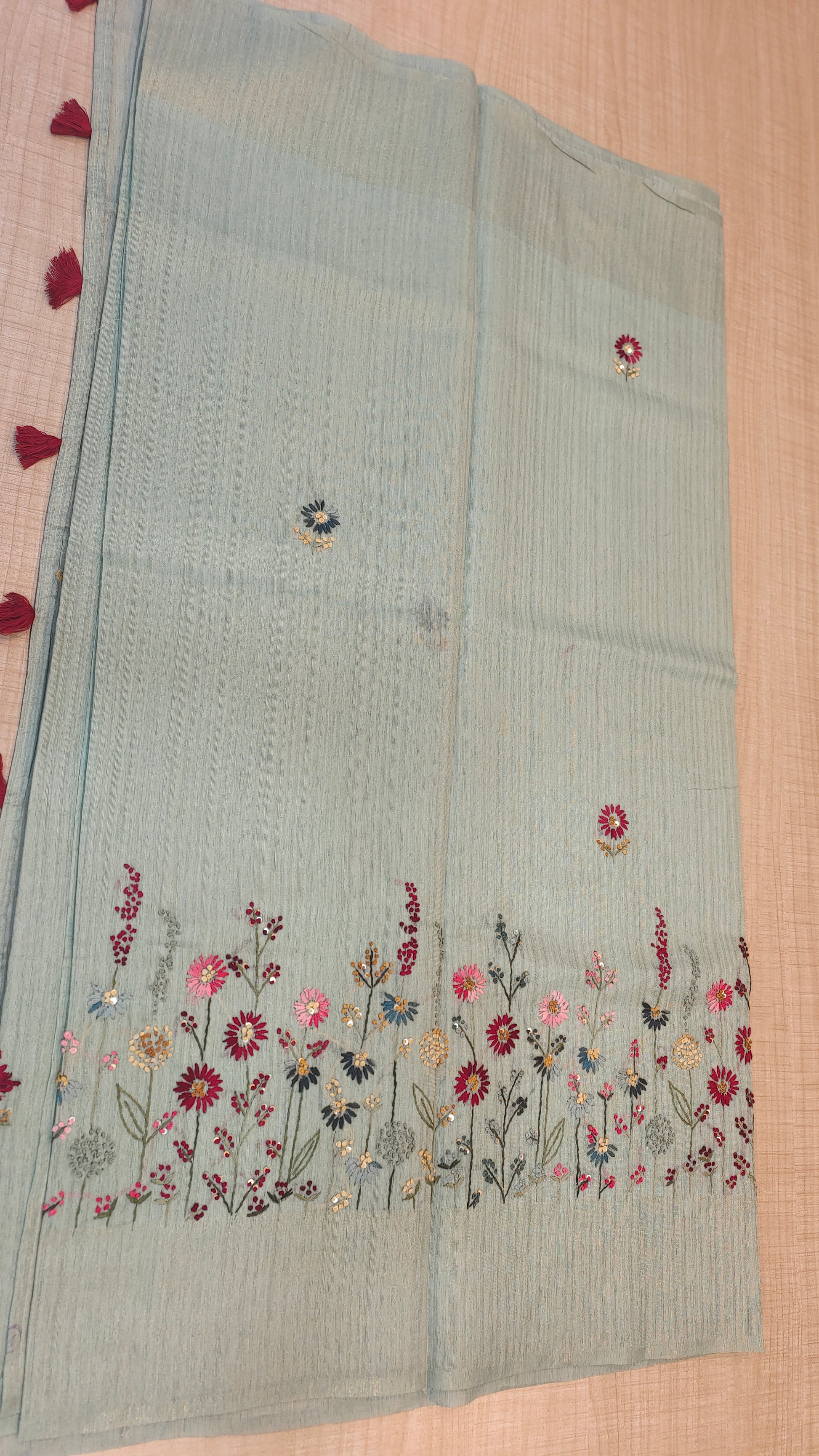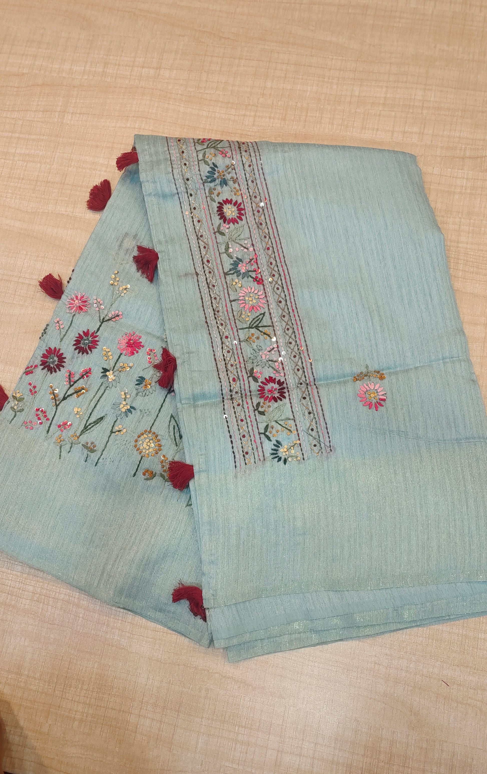 Design : Floral motifs with detailed embroidery work paired with subtle sequin highlights that add a gentle sparkle without overpowering the look.