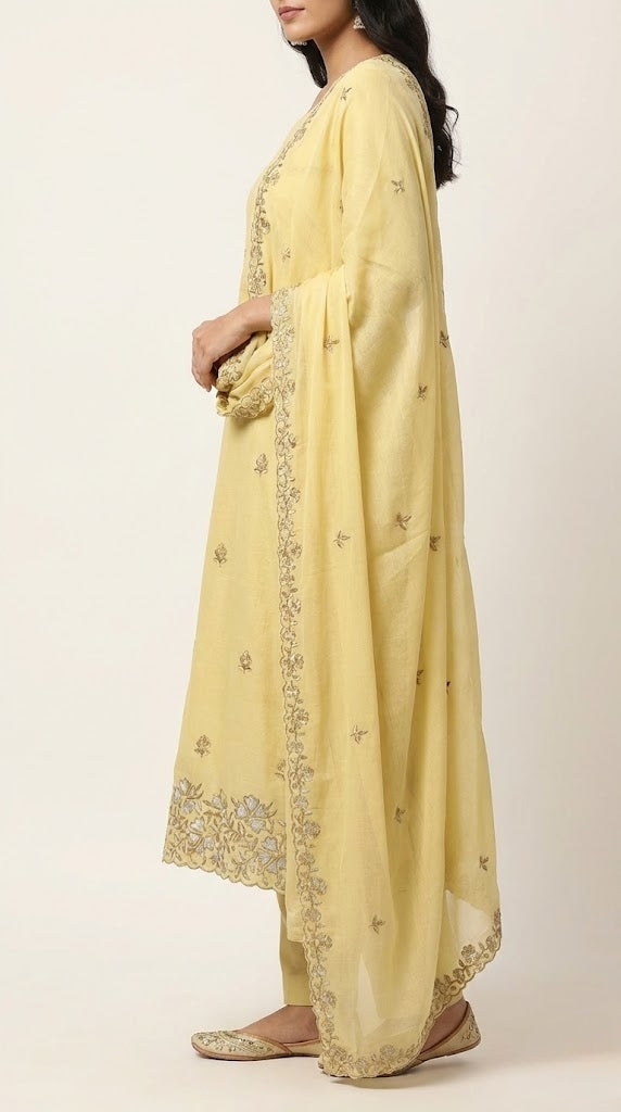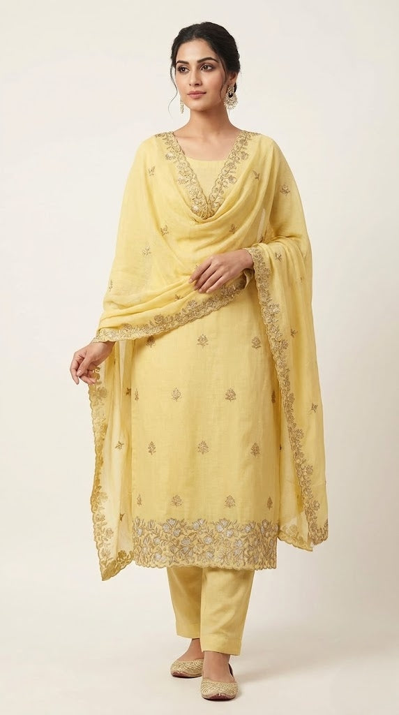 Fabric : Soft, lightweight flowy and gives a rich festive appearances.