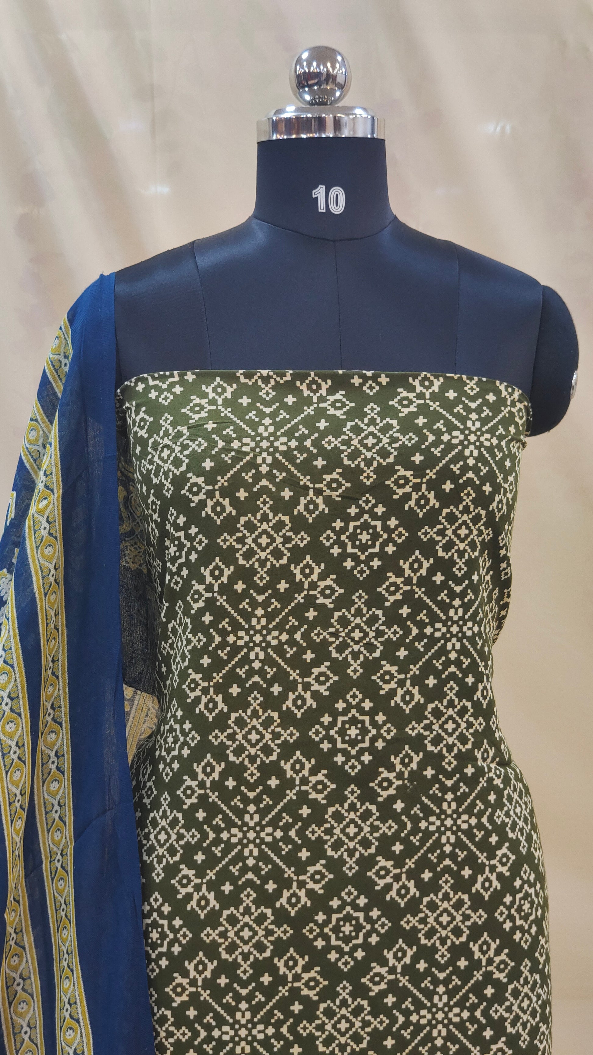 Design : The motifs include small crocess diamond shapes and floral inspired geometric forms.