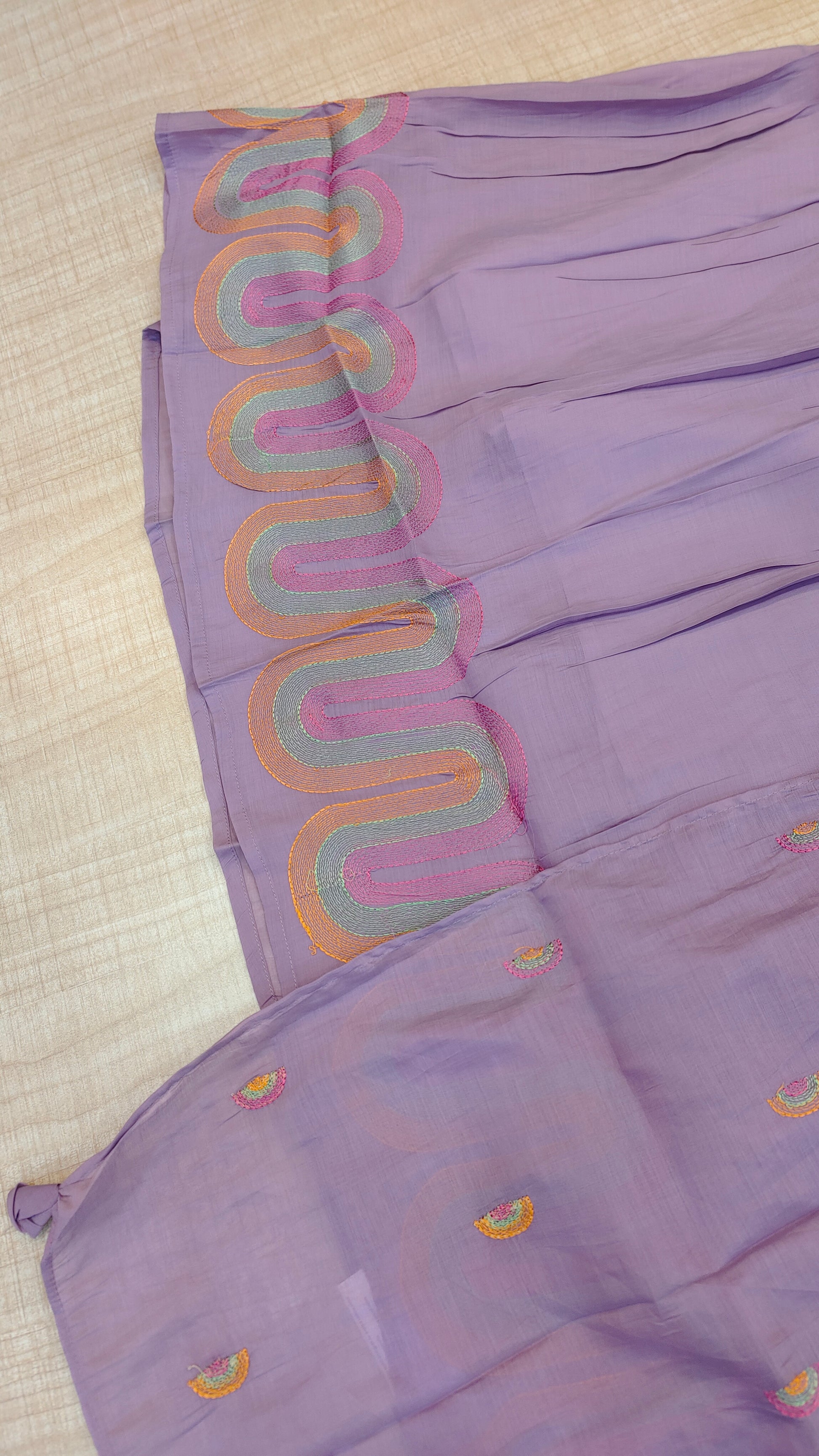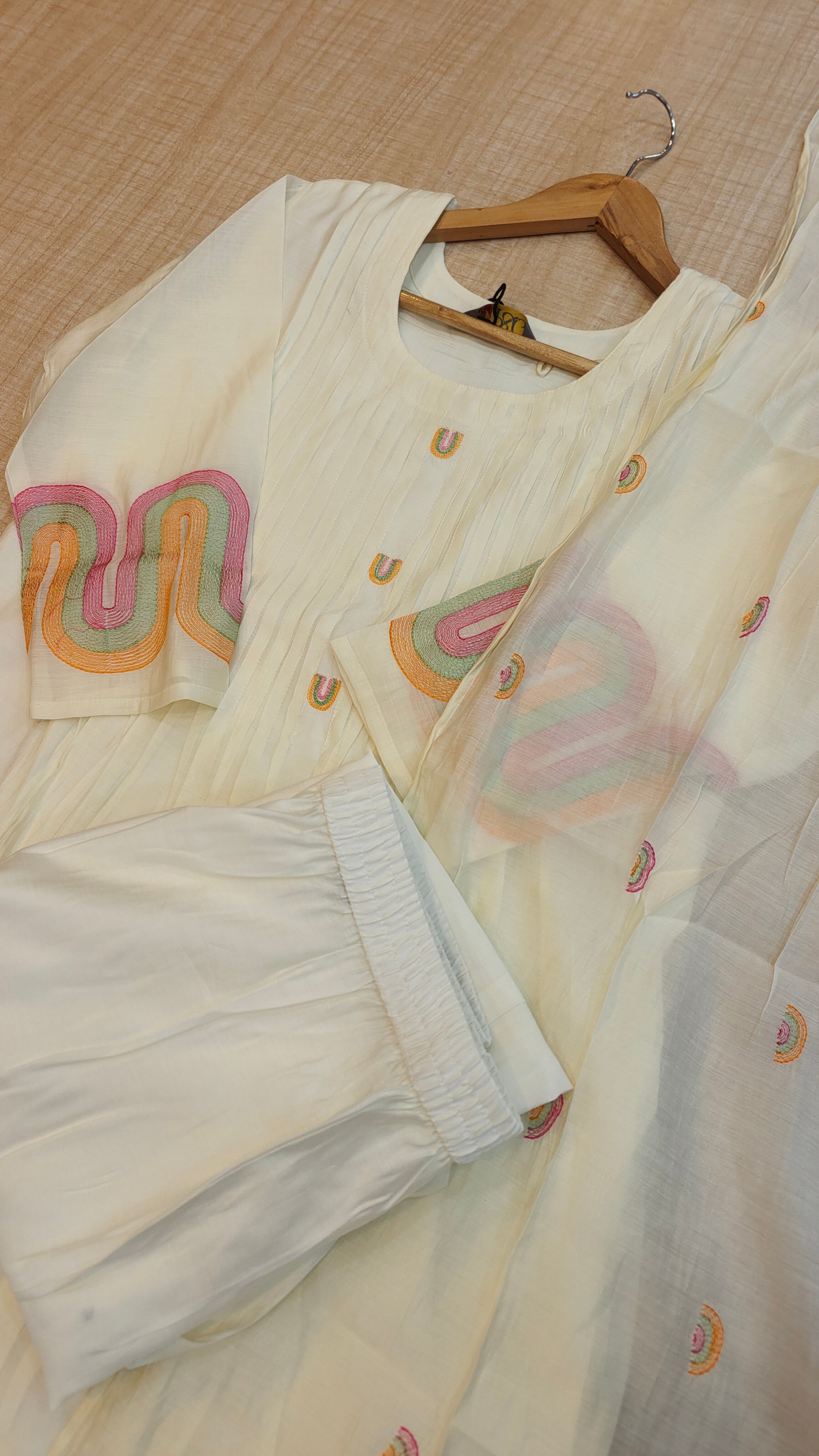 - Do not iron or scrub directly on print /embroidery / hand work items.