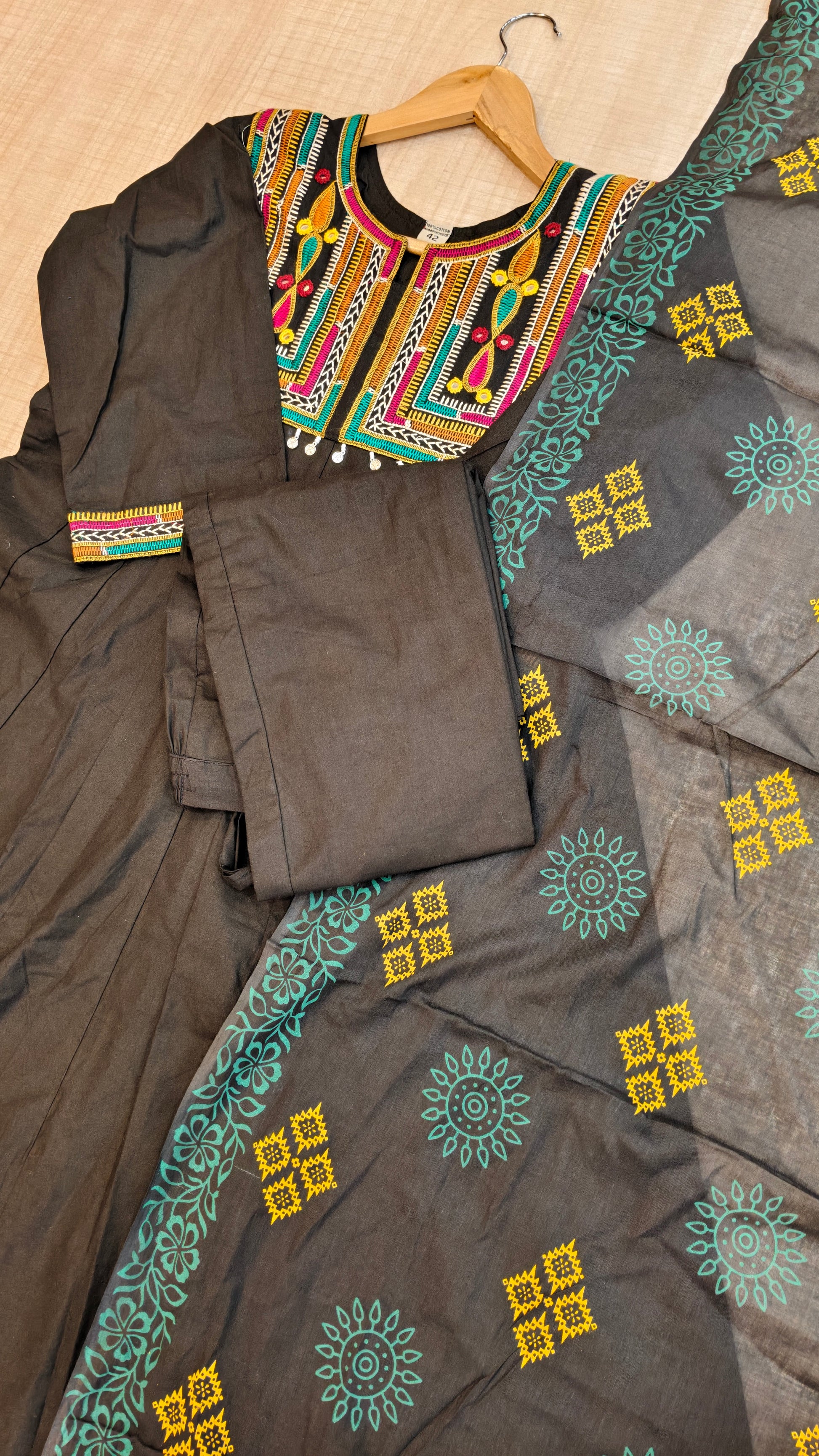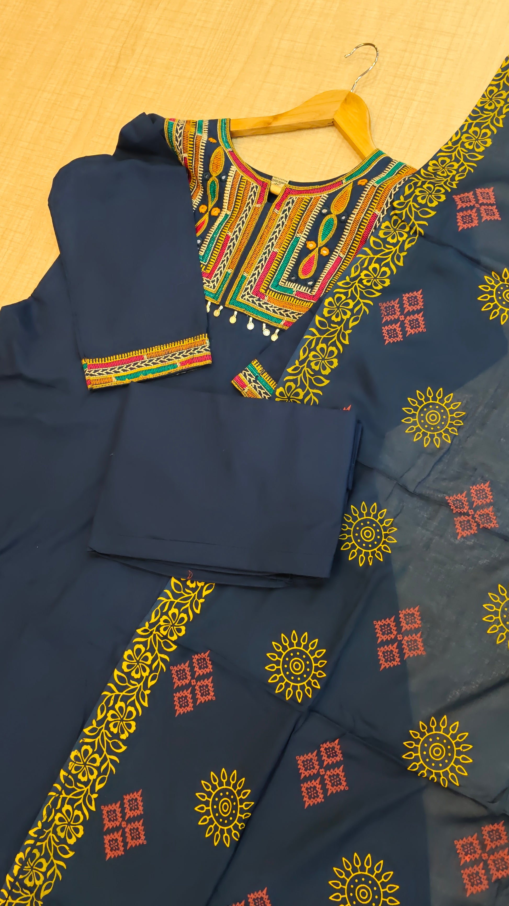 - Do not iron or scrub directly on print /embroidery / hand work items.