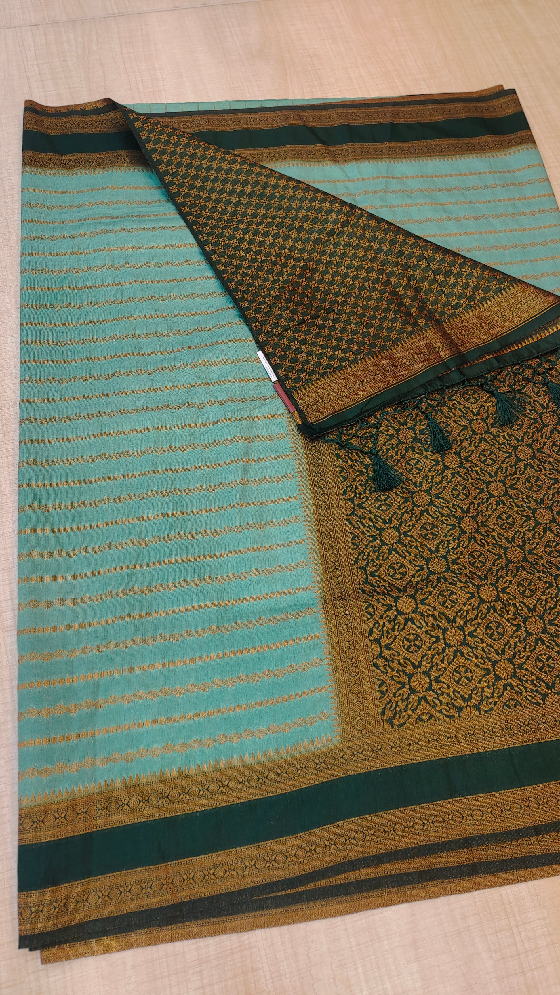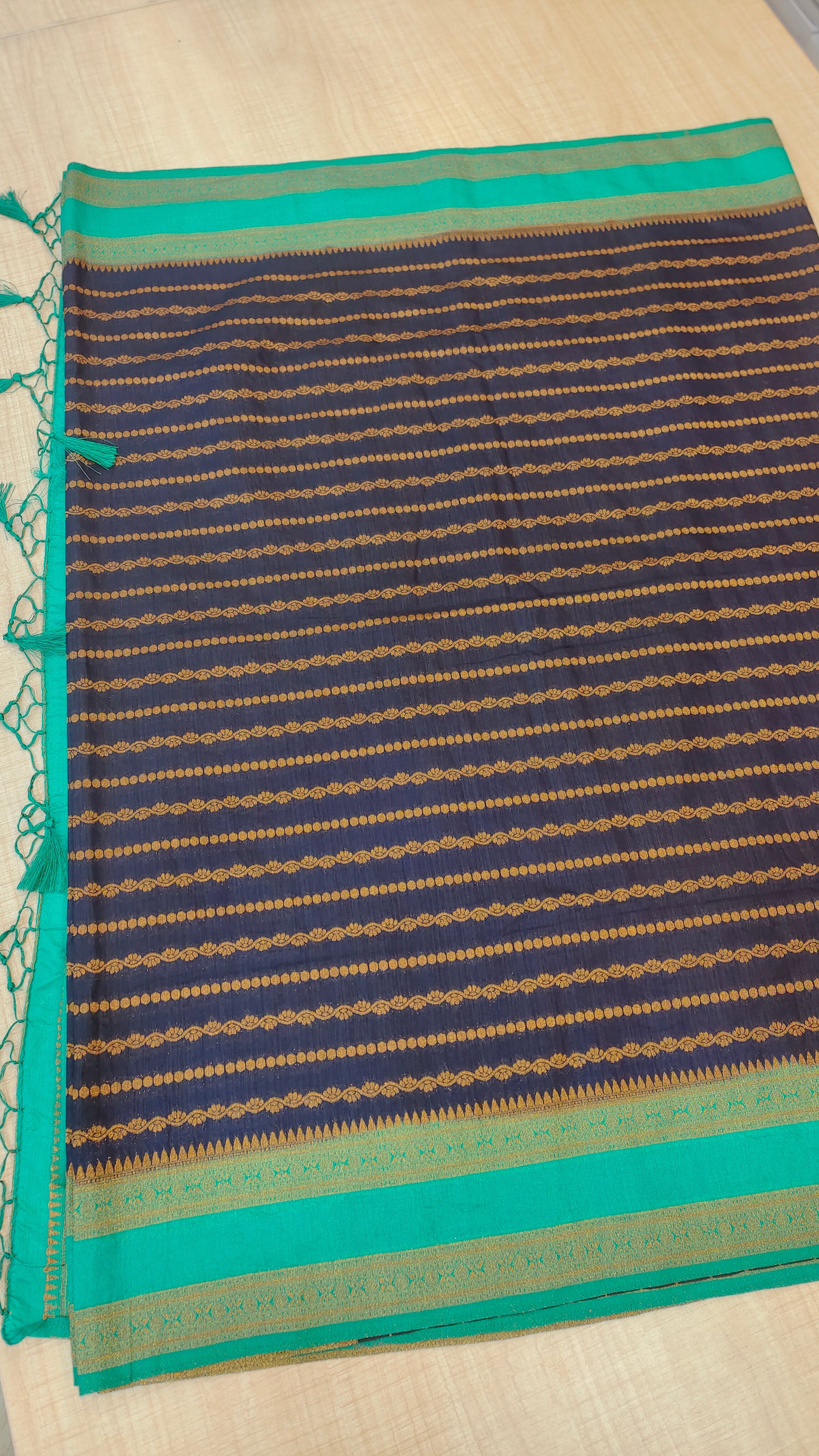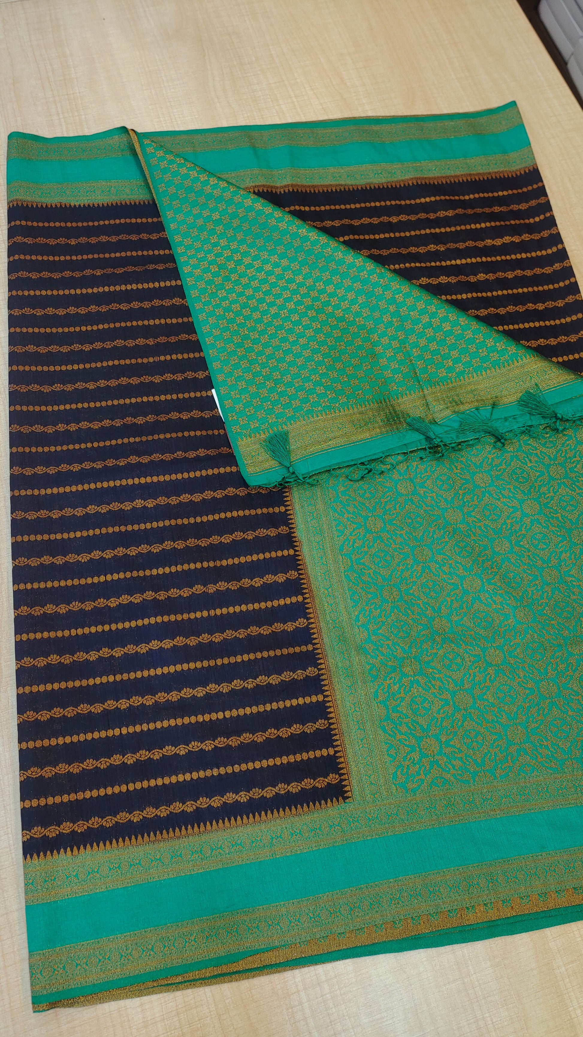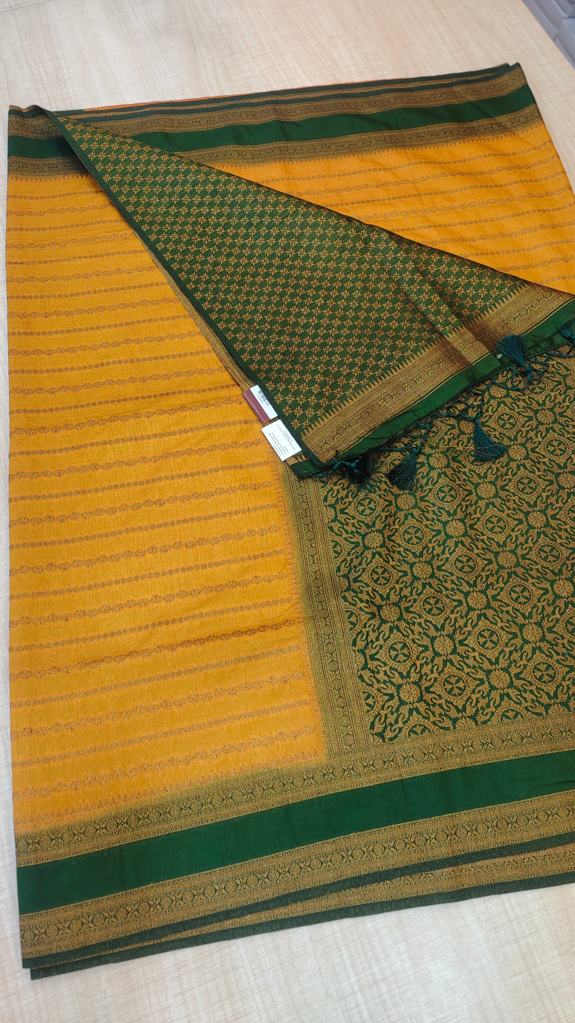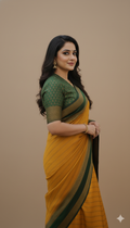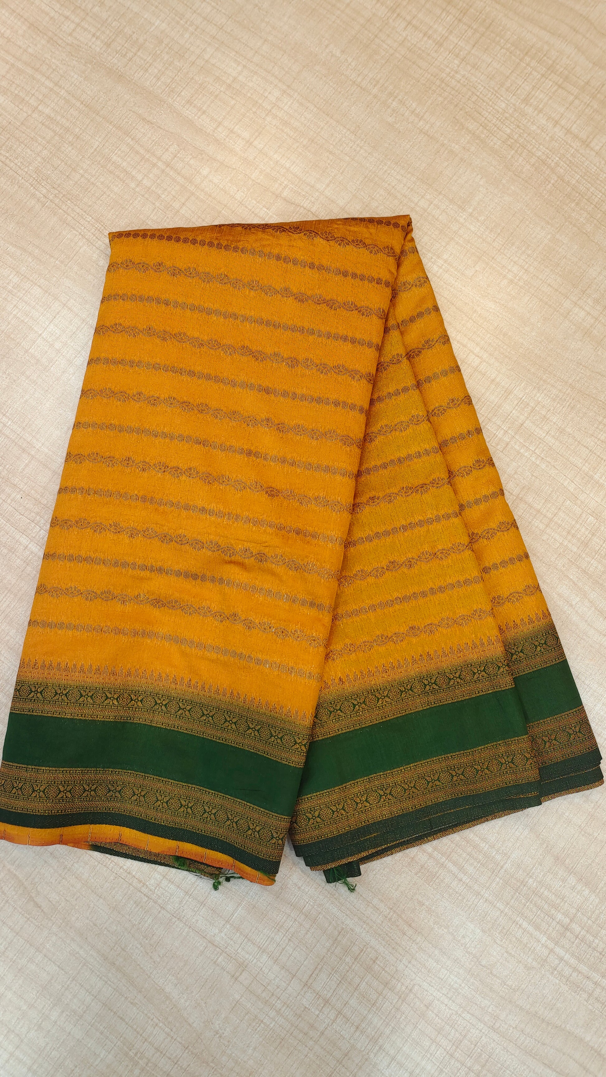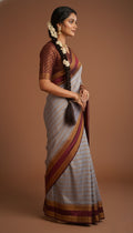 Design : The saree features elegant vertical zari stripes woven in gold giving it graceful and refined look.