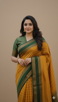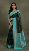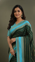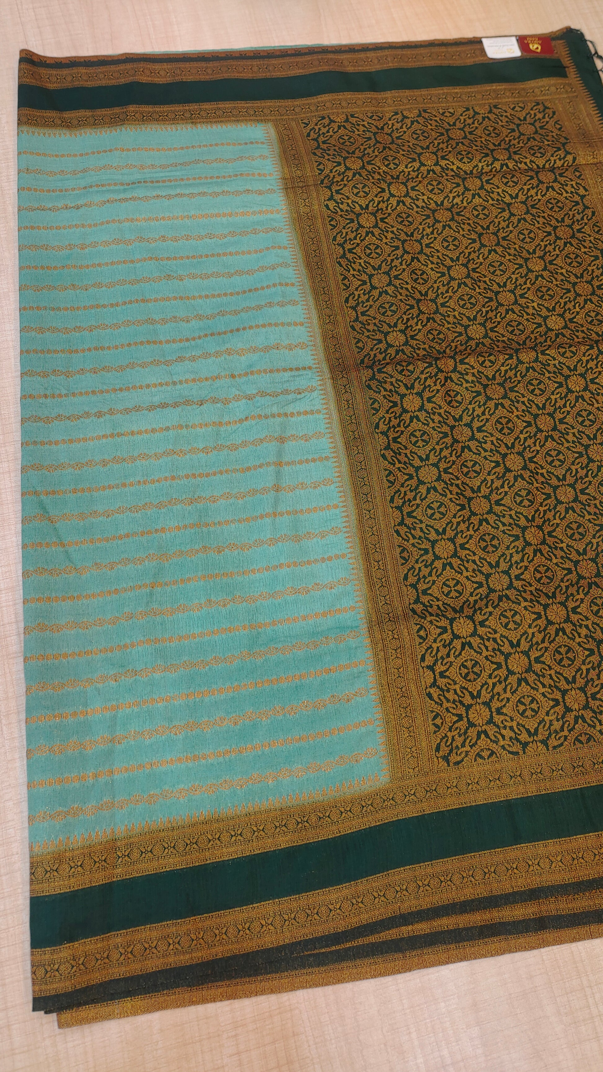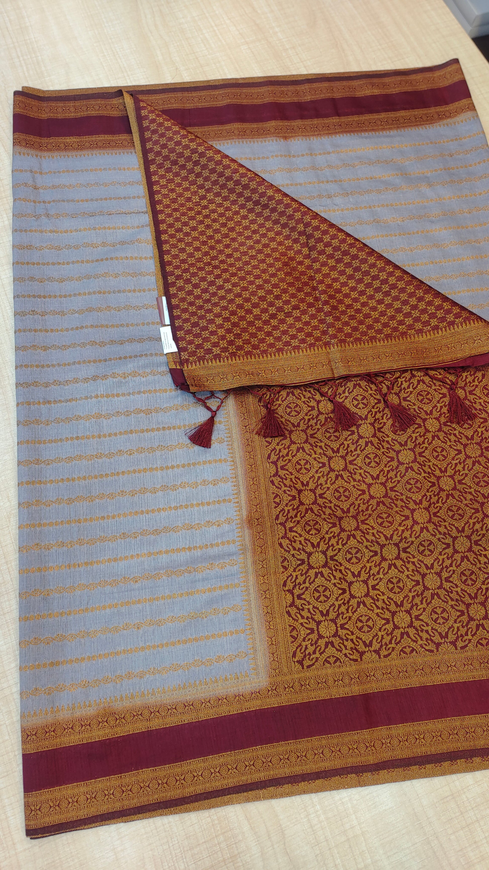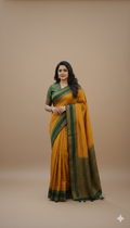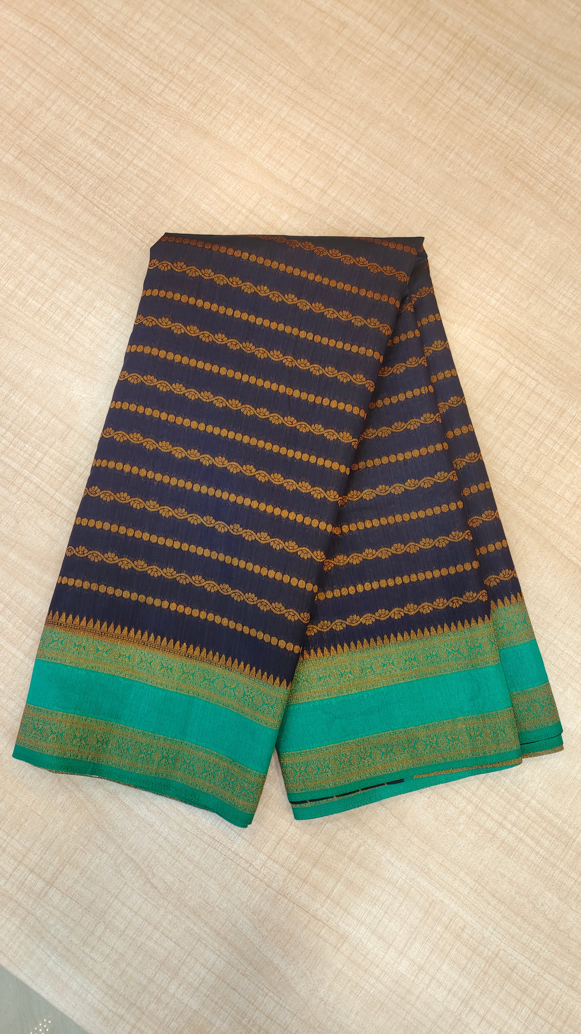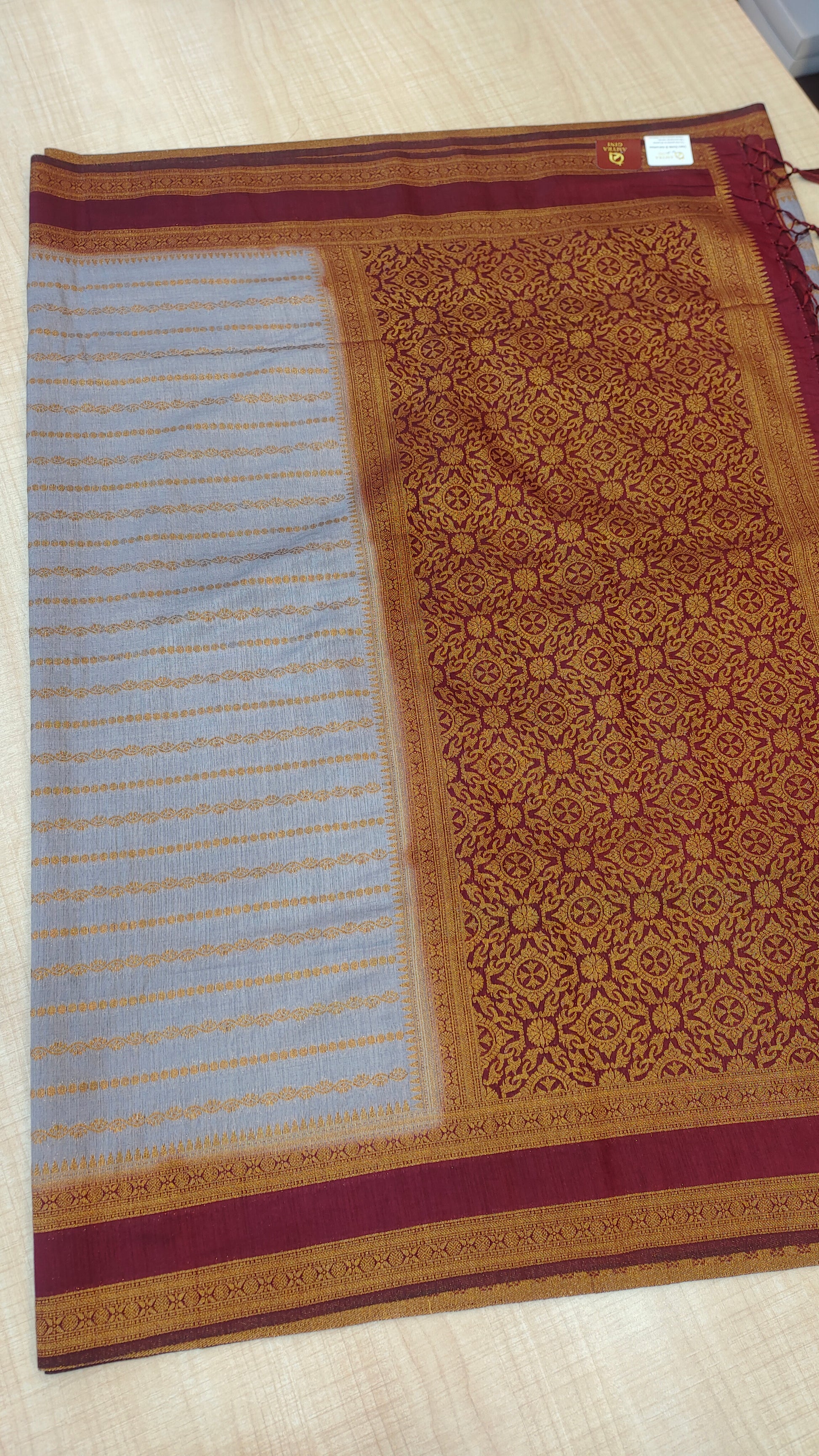Design : The saree features elegant vertical zari stripes woven in gold giving it graceful and refined look.