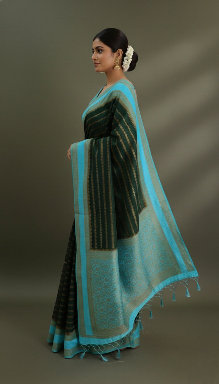 Pallu : Features a beautifully detailed rich pallu that enhances the traditional banarasi charm.
