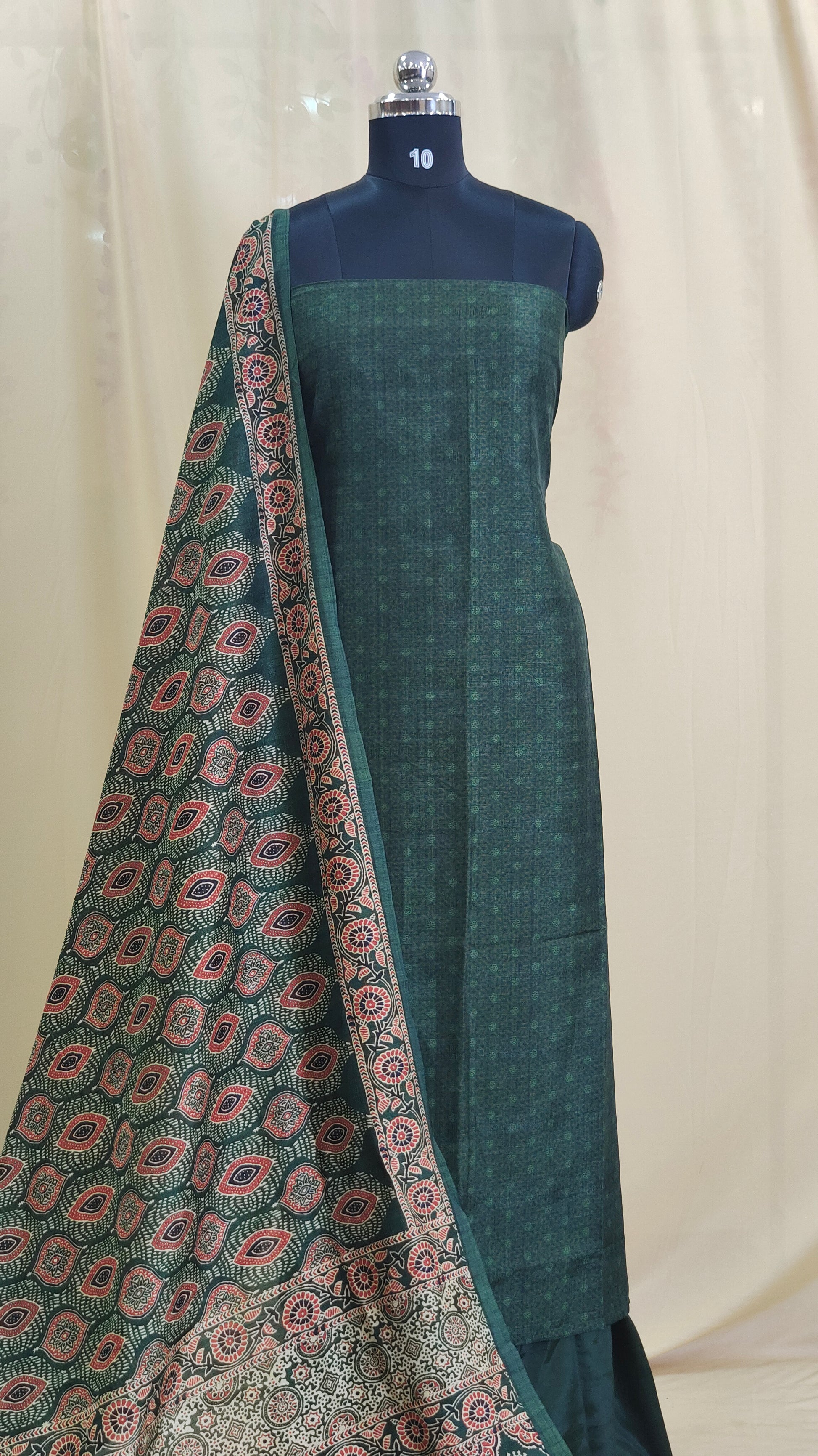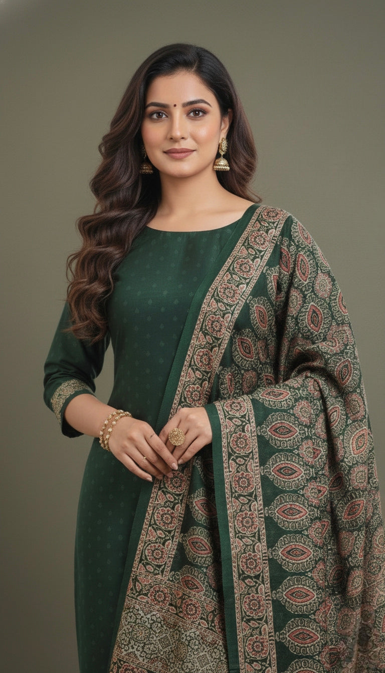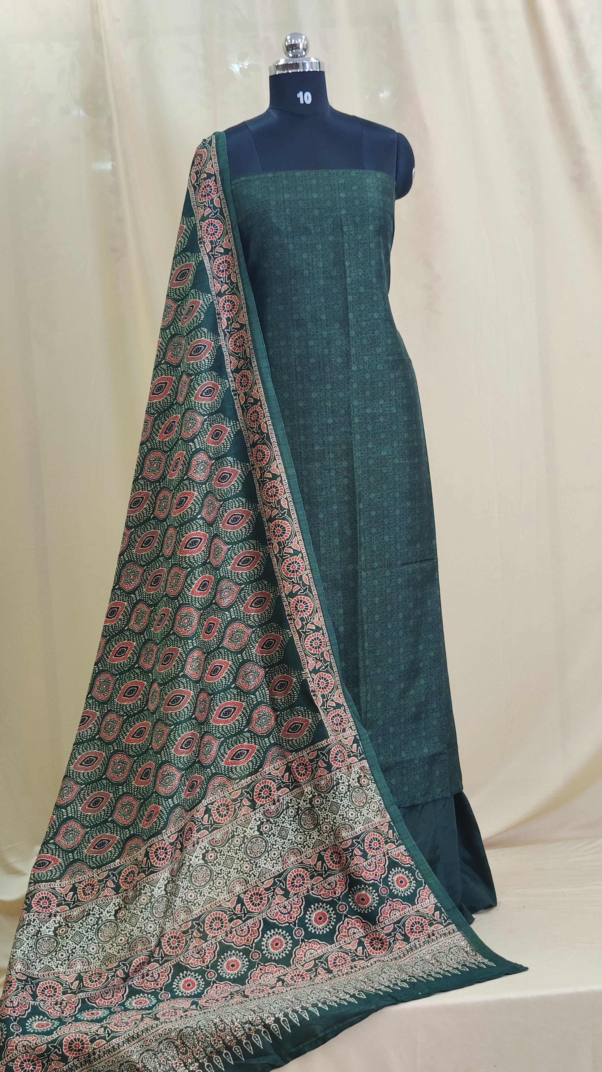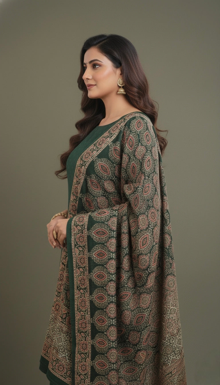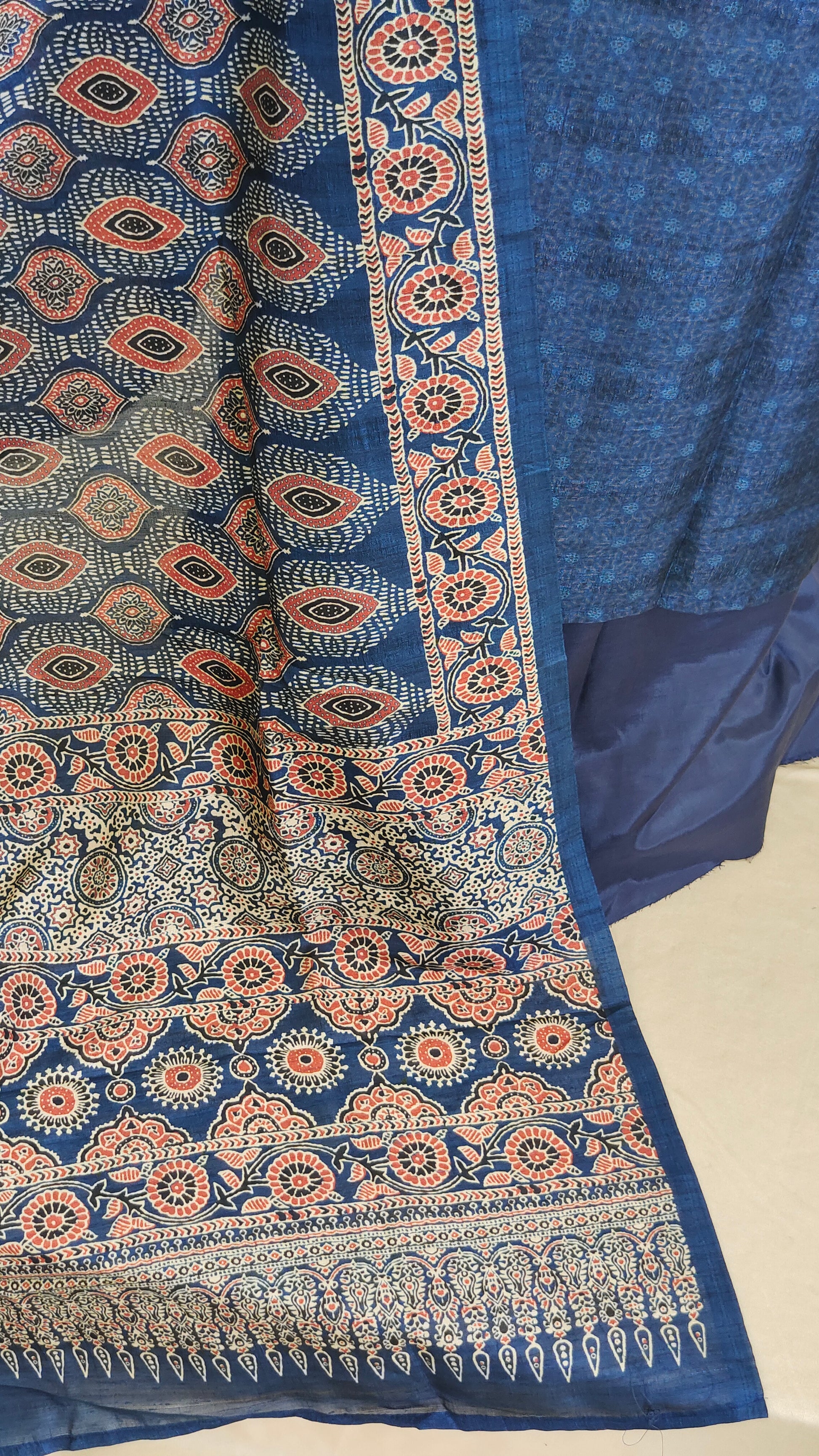 Dupatta : The dupatta features a beautiful ajrak print pattern enhancing its overall charm.