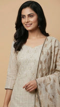 * Beautifully crafted yoke featuring delicate bead - worked floral motifs, enhancing the neckline with a refined festive appeal.