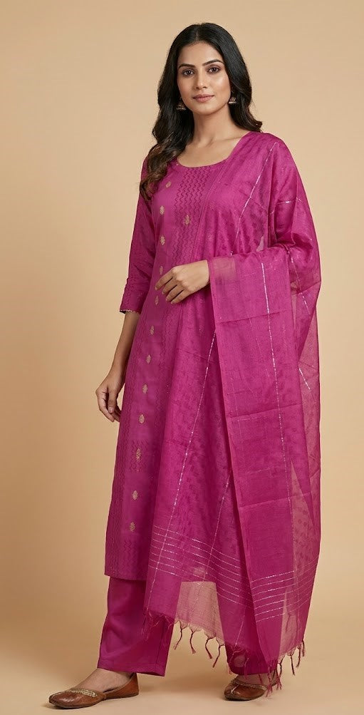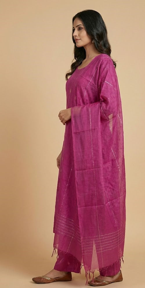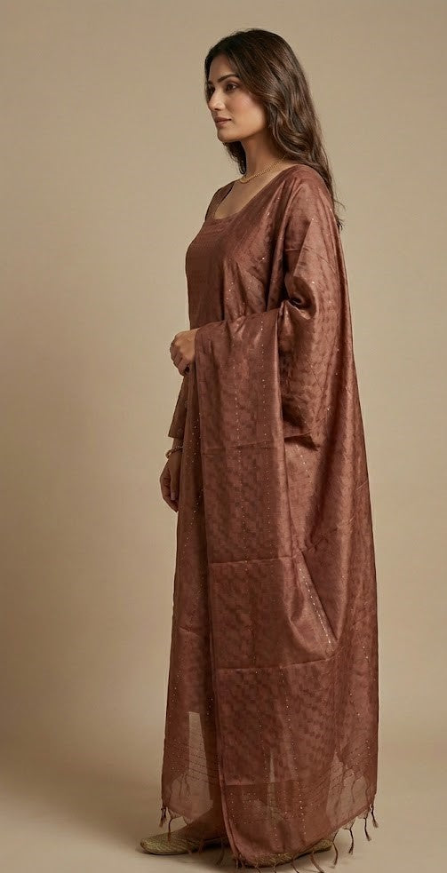 Fabric : Soft and lighweight semi tussar fabric that drapes effortlessly and feels comfortable all day.