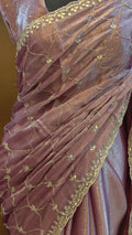 Design : A charming silk organza saree, delicately adorned with beads and stone work across the body.