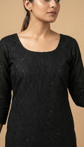 * The top is beautifully enhanced with intricate thread embroidery work adding a refined and elegant touch to the outfit.
