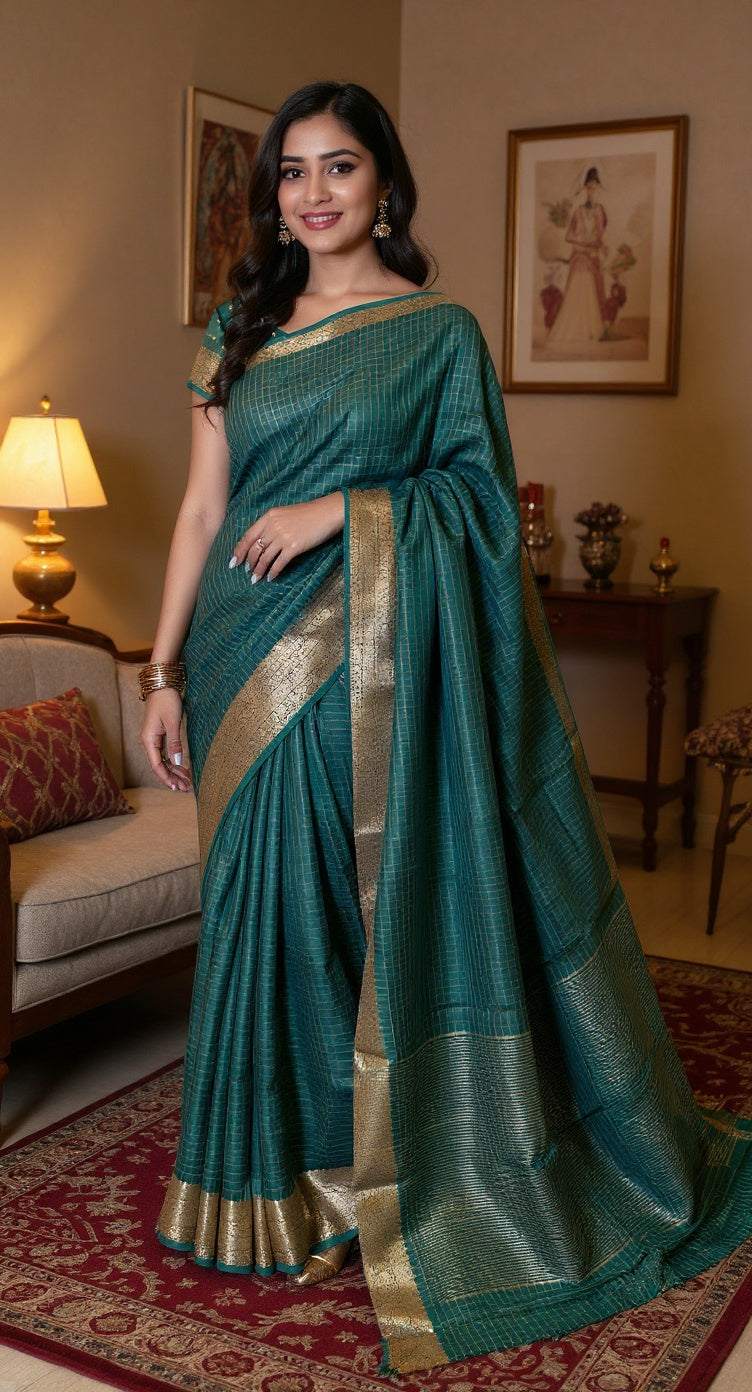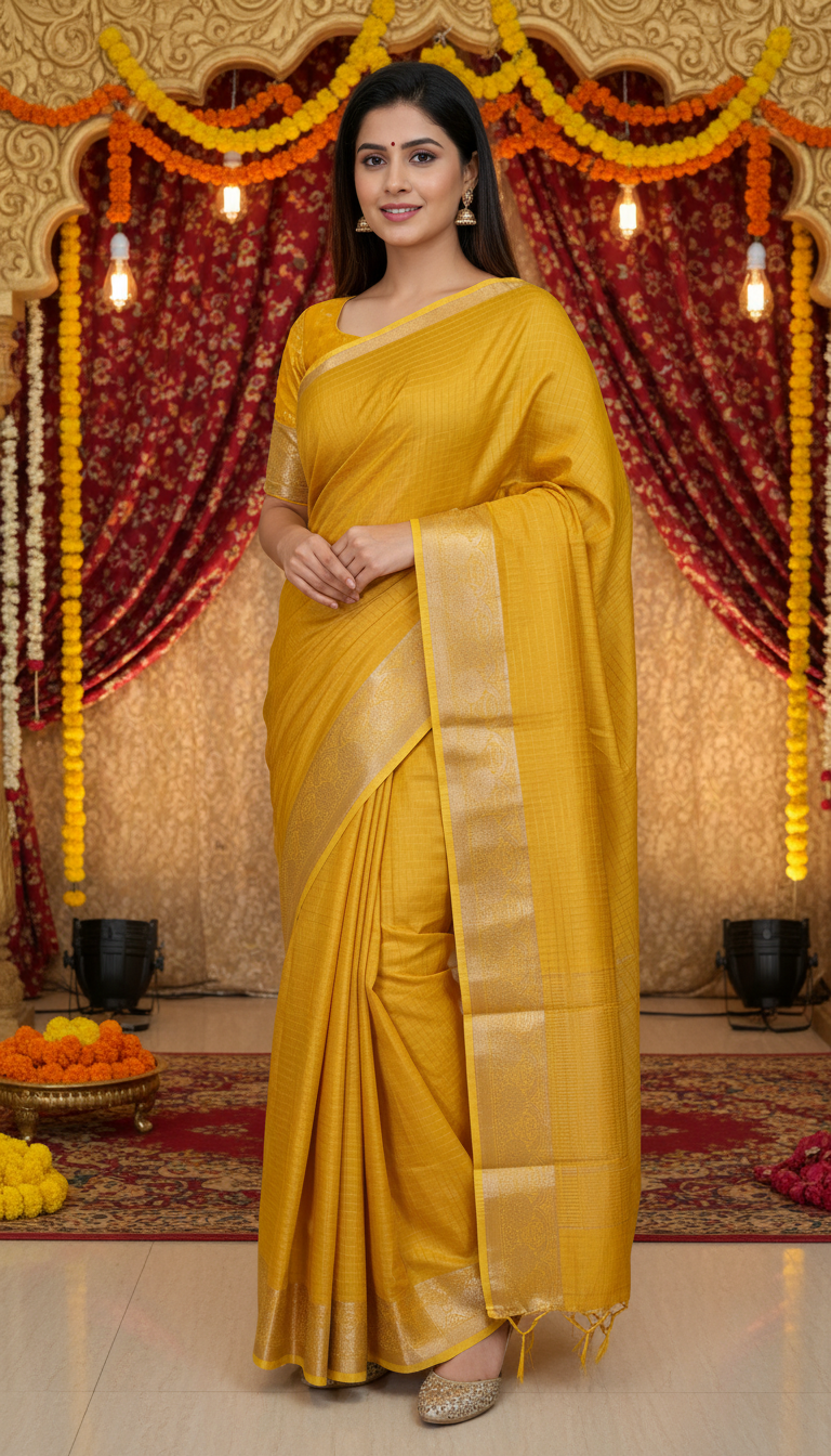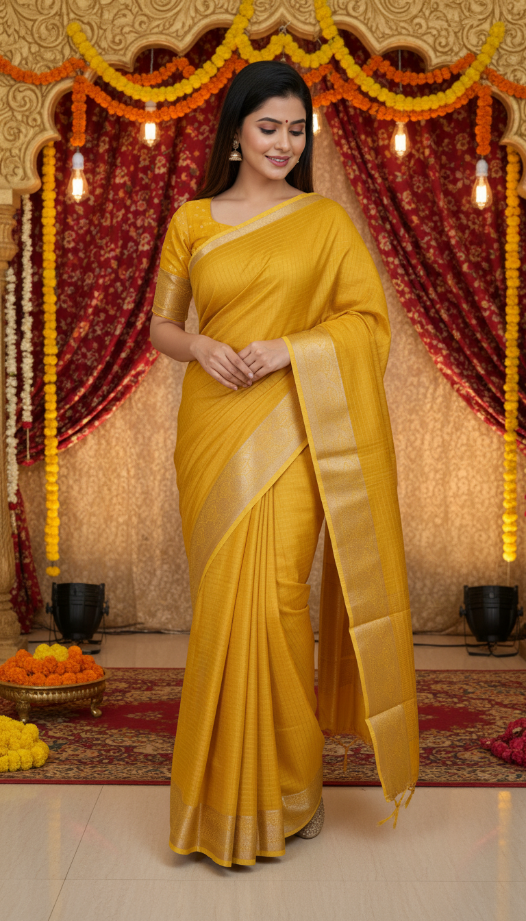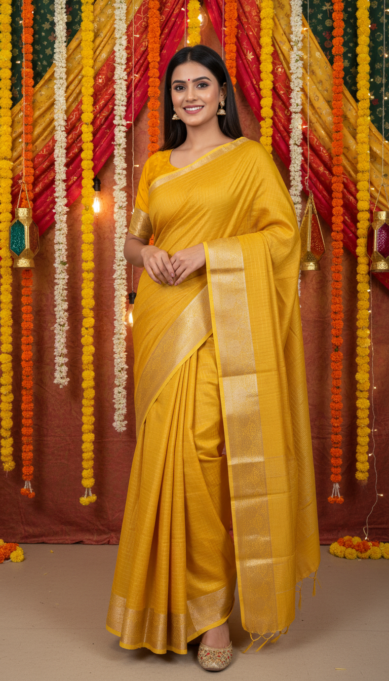 Border : Traditional zari border with rich detailing perfect for festive & party wear.