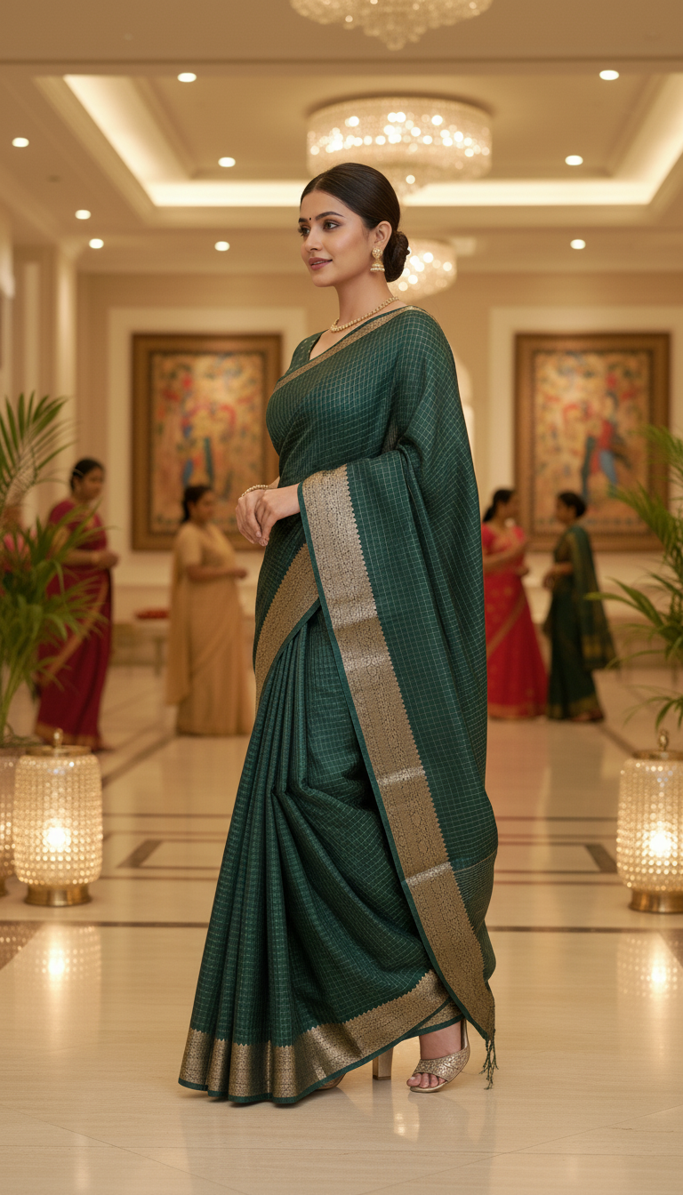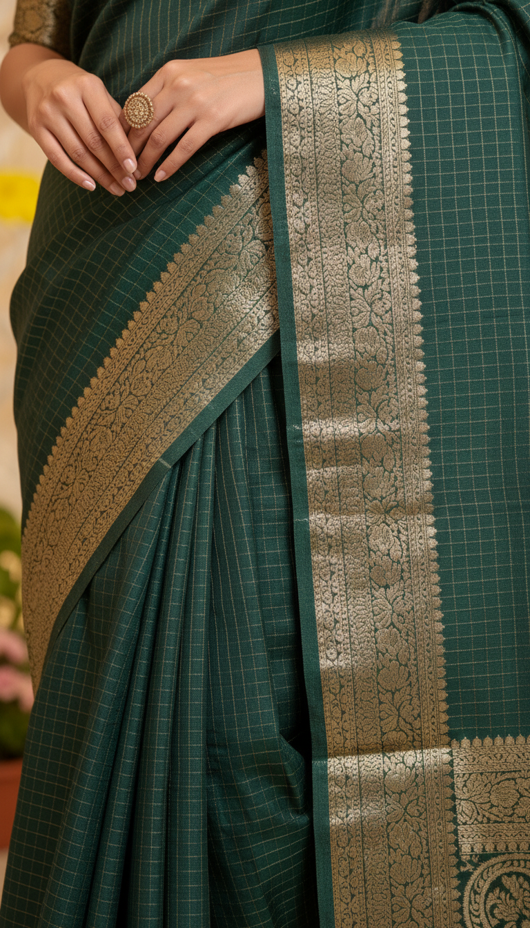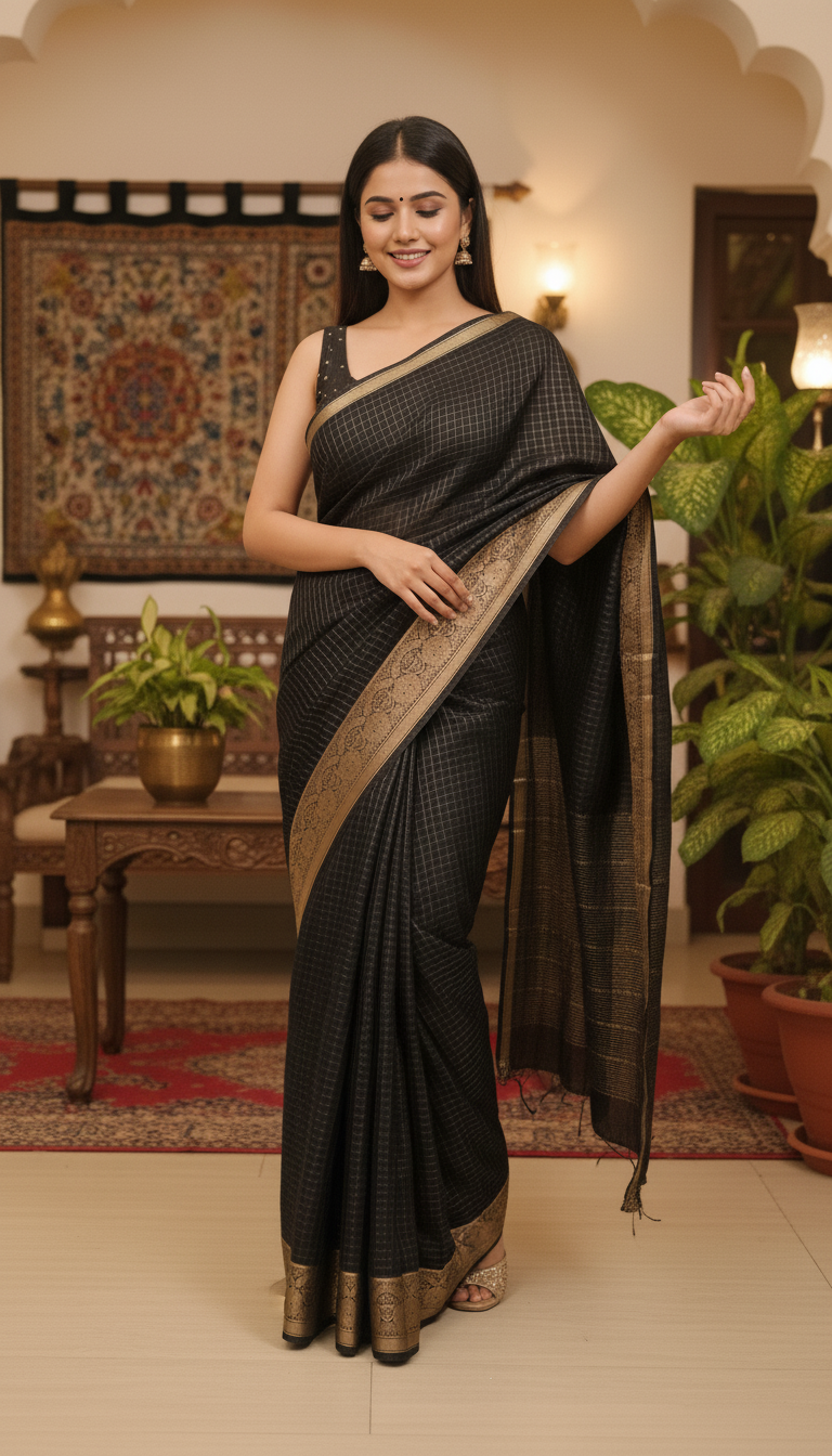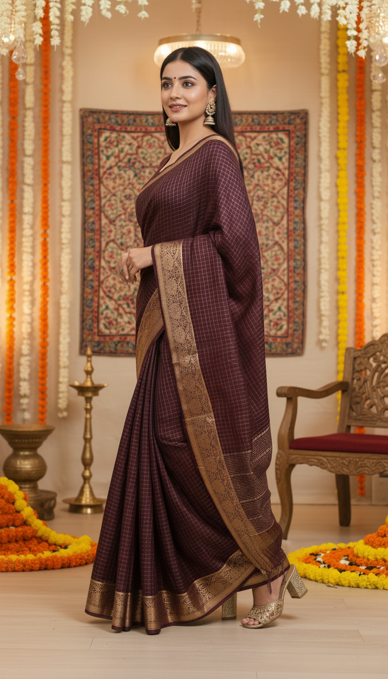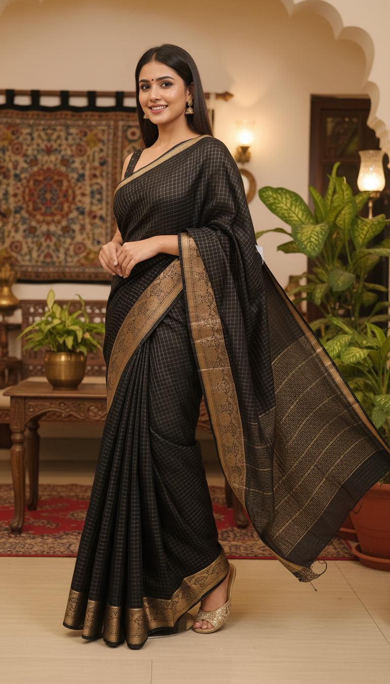 Border : Traditional zari border with rich detailing perfect for festive & party wear.